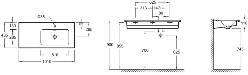 Умывальник Jacob Delafon Vox EXAD112-00 101x46,5 правая