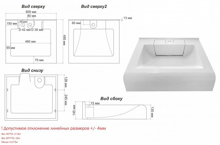 Размеры (ШхГхВ): 60х49,5х13,5 см