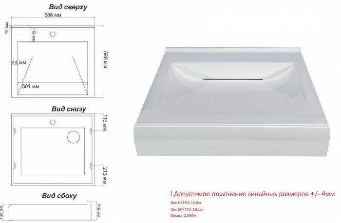 Размеры (ШхГхВ): 58,6х59,8х11,9 см