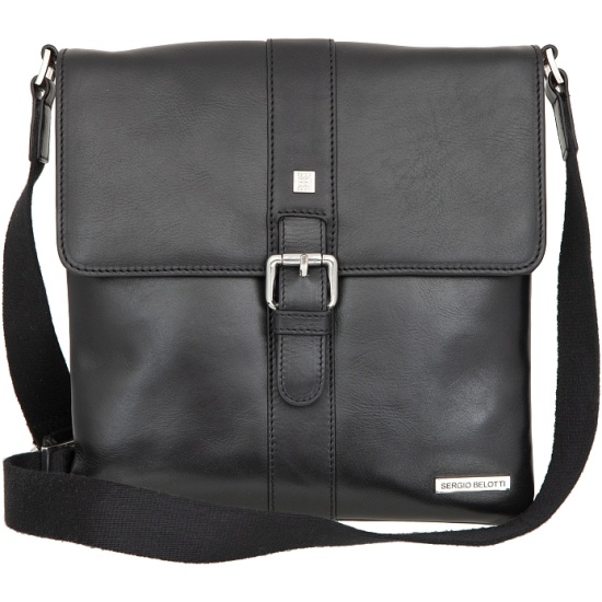 Сумка мужская SERGIO BELOTTI 9622-25 VT Genoa black, чёрныйМужская сумка чёрного цвета из мягкой натуральной кожи гладкой фактуры. Сумка состоит из одного основного отделения, которое закрывается клапаном на магнитной кнопке. В нутри расположены 5 кармашков для пластиковых карт, карман для документов на молнии, карман для мобильного телефона, 2 держателя для авторучки. Снаружи на задней стенке карман на молнии. Оснащена регулируемым плечевым ремнём. Цвет фурнитуры - серебро.