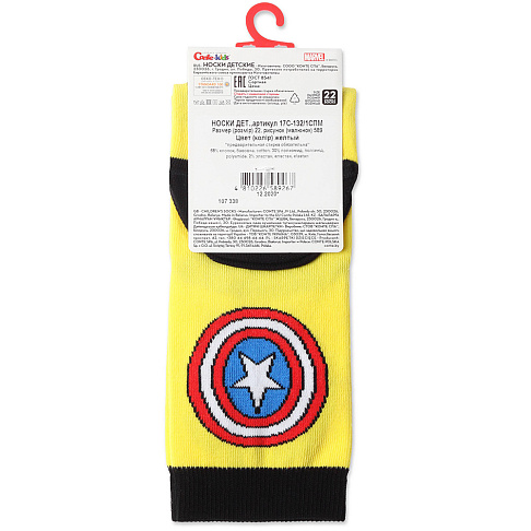 Мягкие и комфортные (короткие) носочки Conte Kids (серии Marvel) приятно порадуют изображениями Капитана Америки и разнообразием цветов. Прекрасно подойдут как мальчикам, так и девочкам, и станут неотъемлемой частью повседневного гардероба. Хлопок в составе ткани позволит ножкам дышать, а полиамид - продлит срок службы любимых носочков.
