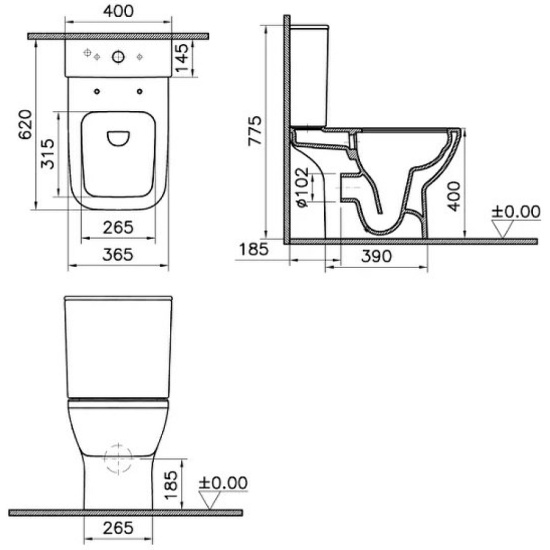 Унитаз VITRA напольный безободковый Integra Square Open-Back с тонким сиденьем микролифт 9833B003-7205