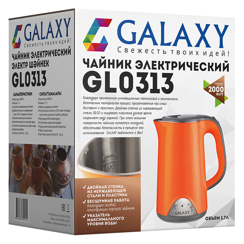 ОсобенностиДвойные стенки, внешняя выполнена из экологически безопасного пищевого пластика, внутренняя - из нержавеющей стали марки 18/10. Благодаря такой конструкции наружная поверхность чайника не нагревается, о него невозможно обжечься, устройство издает меньше шума при нагреве воды.