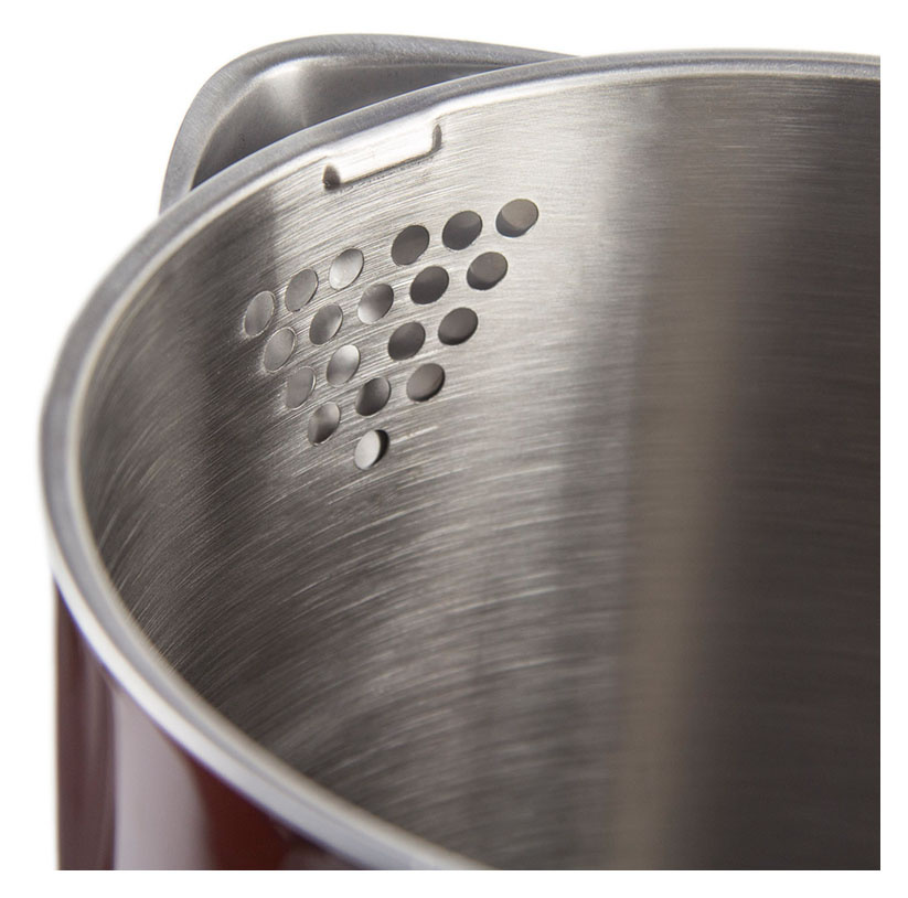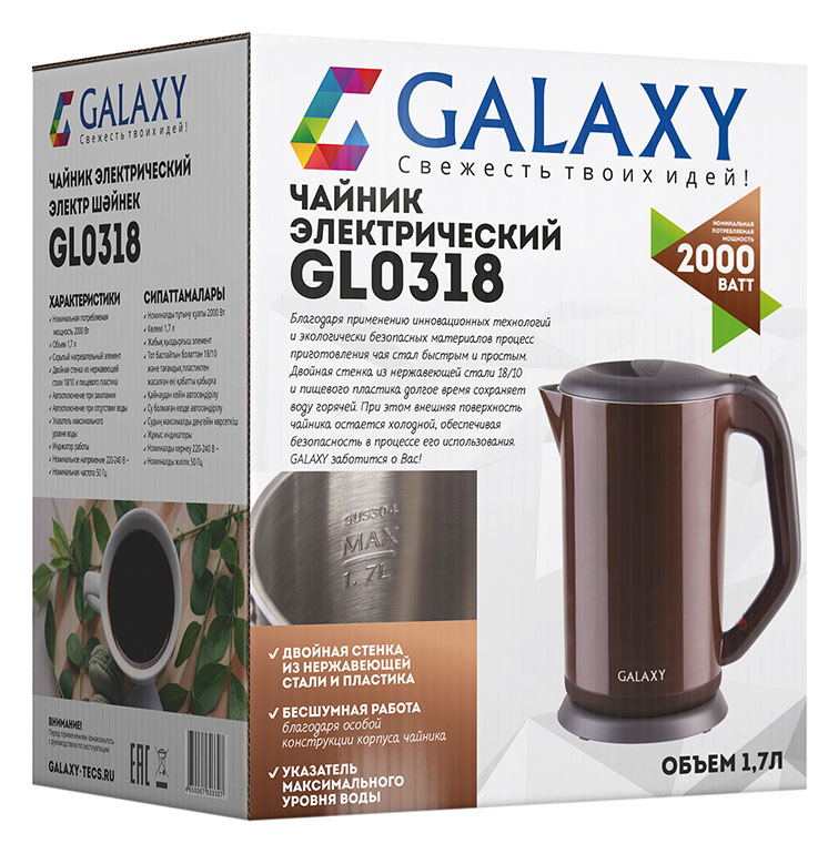 ОсобенностиДвойные стенки, внешняя выполнена из экологически безопасного пищевого пластика, внутренняя - из нержавеющей стали марки 18/10. Благодаря такой конструкции наружная поверхность чайника не нагревается, о него невозможно обжечься, устройство издает меньше шума при нагреве воды.