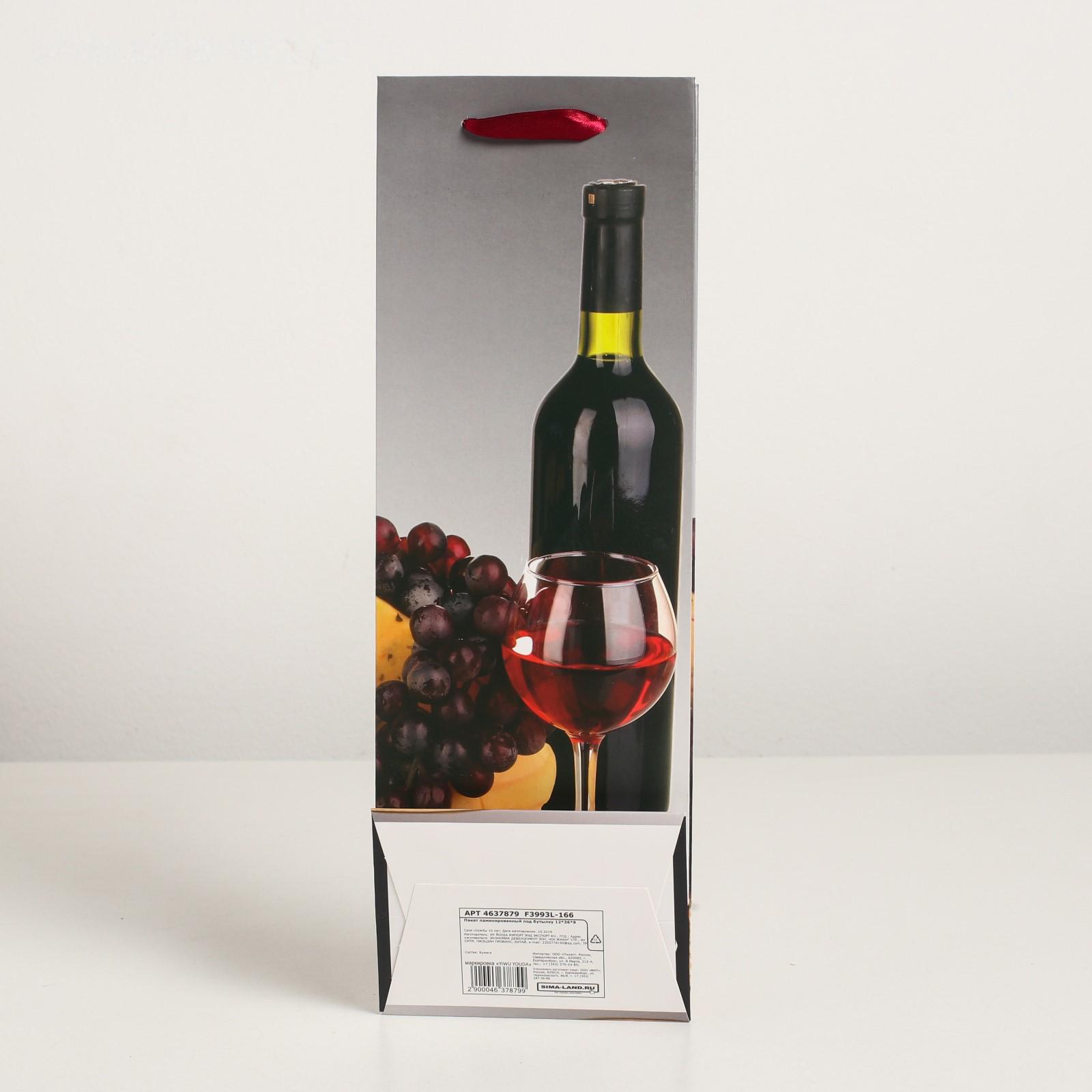 Пакет ламинированный под бутылку, 12 х 9 х 36 см 4637879
