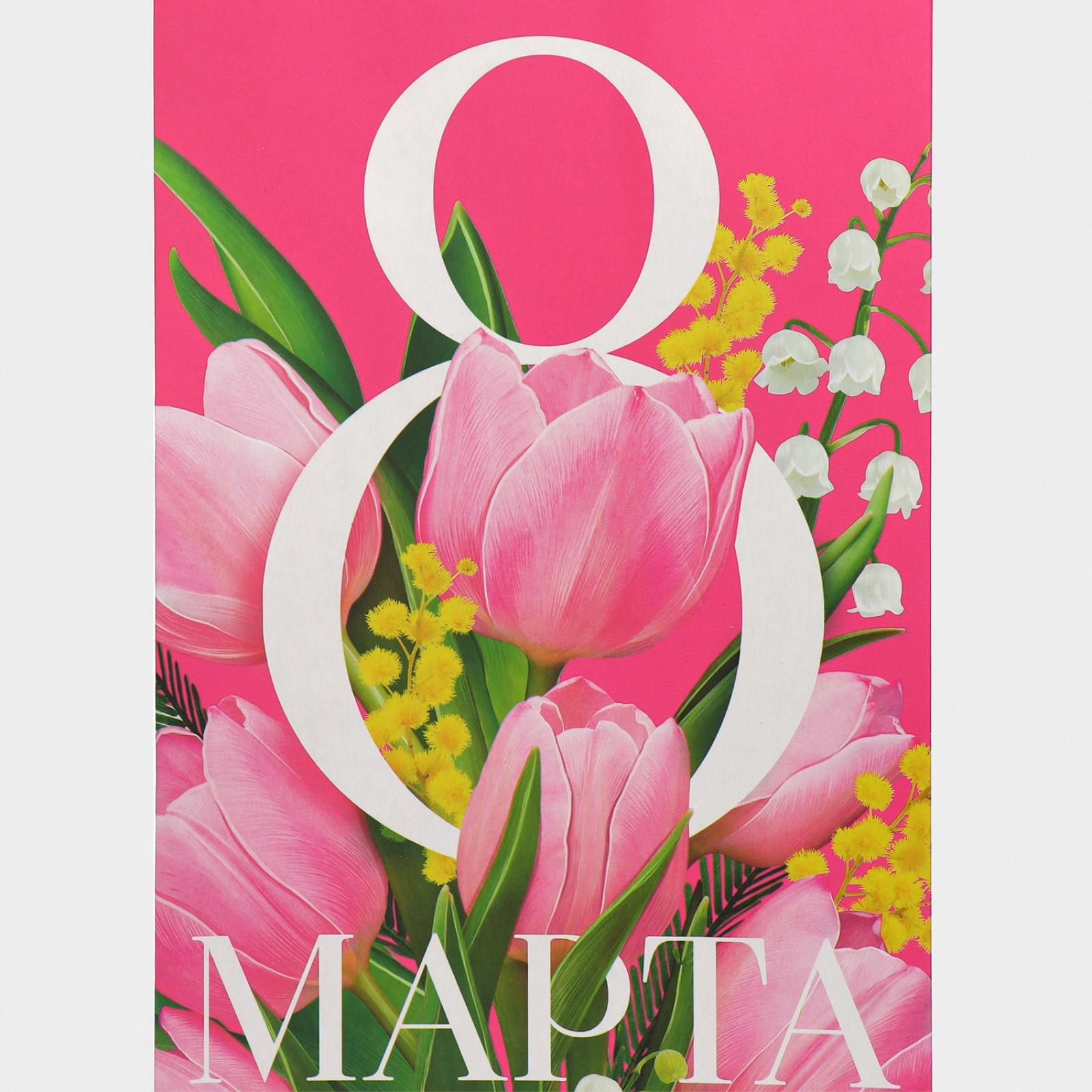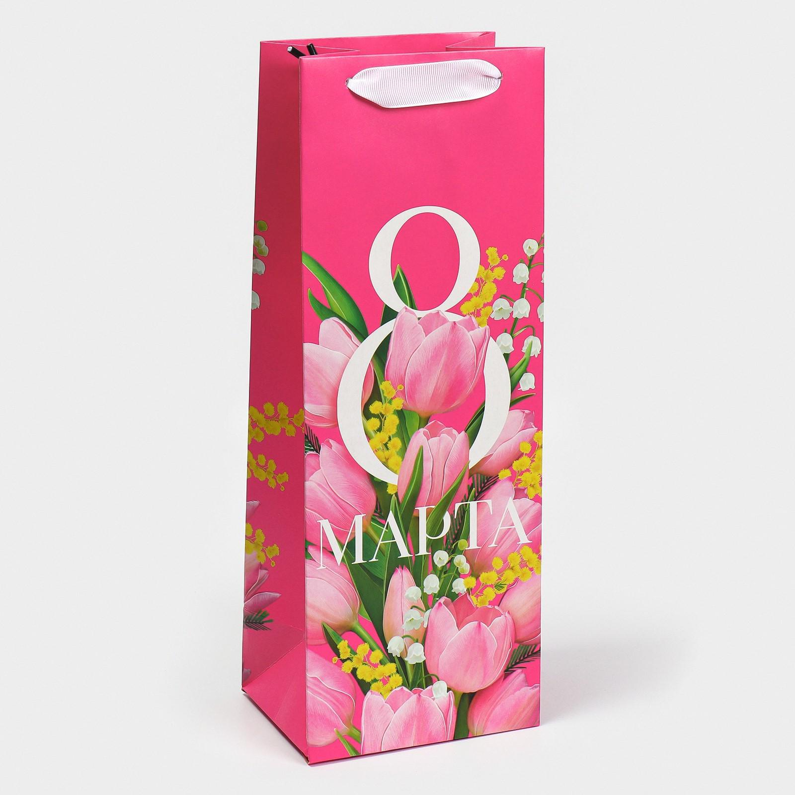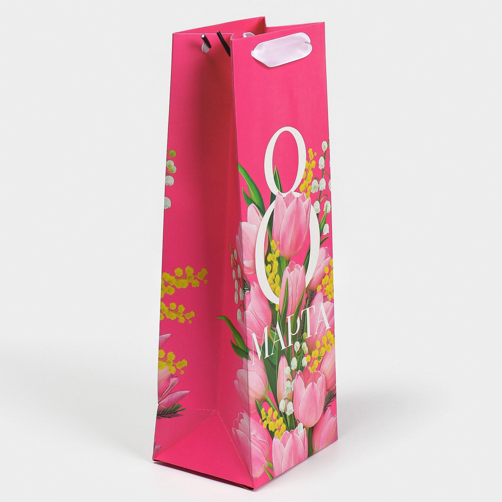 Пакет под бутылку «С 8 марта!», 13 × 36 × 10 см 7887426
