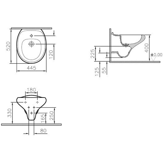 Биде подвесное VITRA 4516B403-1599 Istanbul с одним отверстием под смеситель 52 см рекомендуется с рамой 780-5820