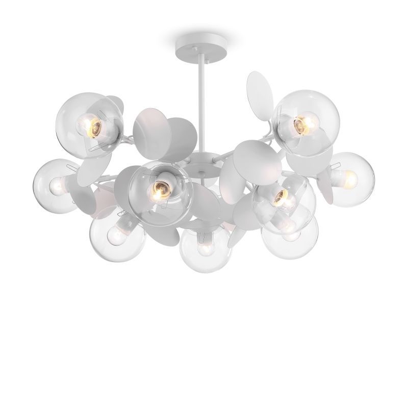 Эстетика минималистичной эры дизайна стала источником вдохновения для серии Satellite. Футуристический образ раскрывается через множество парящих в воздухе сфер. Они выполнены из матового и прозрачного стекла, подчеркивая визуальную легкость модели. Хаотичное расположение элементов добавляет композиции динамичности и экспрессивности. Арматура светильников выполнена из металла и представлена в двух оттенках: белый и серебро. Яркий и запоминающийся арт-объект украсит интерьеры, выполненные в стиле mid-century modern, хай-тек, техно, ретрофутуризм. Серия включает потолочные люстры на 10 и 6 ламп с цоколем E27.