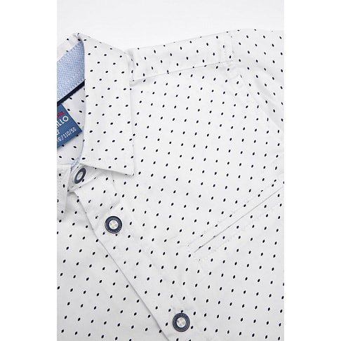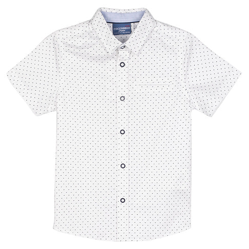Рубашка для мальчика из коллекции ELEGANT JUNIOR BOY с короткими рукавами на пуговицах и нежным принтом в горошек подходит как для формального, так и для более повседневного стиля. Пуговицы яркого цвета придают рубашке оригинальный характер.
