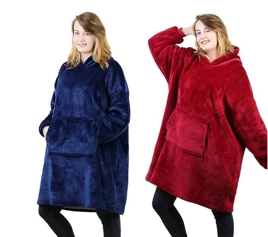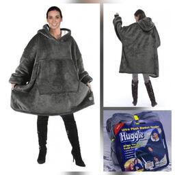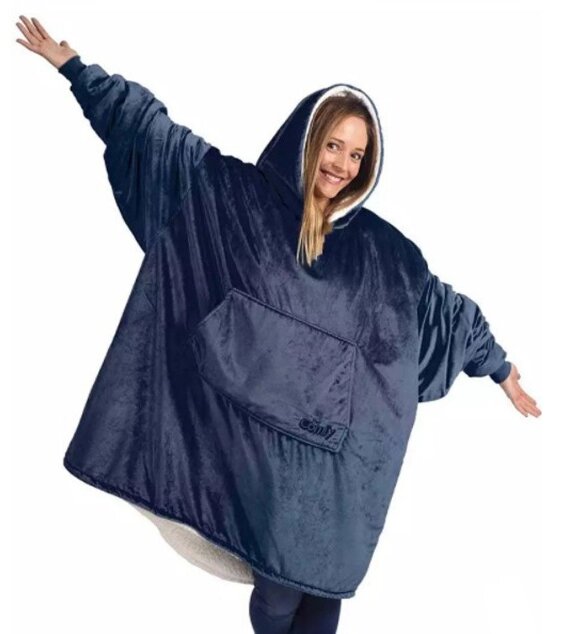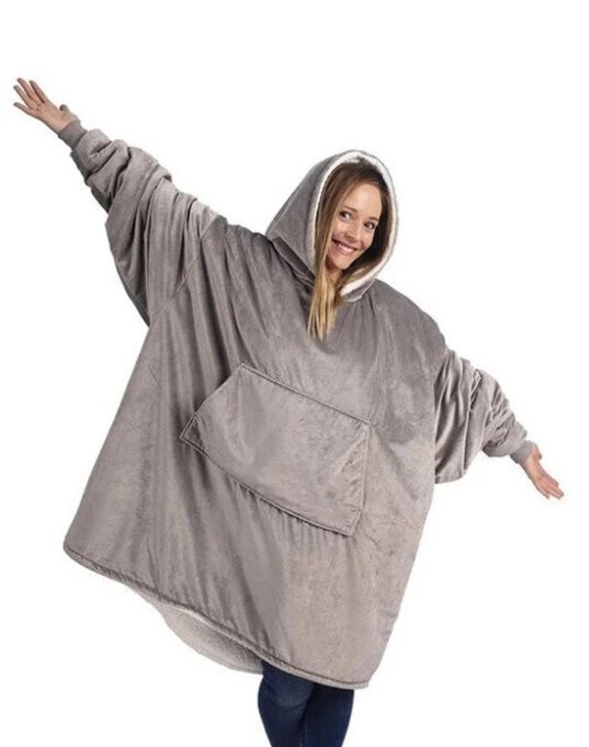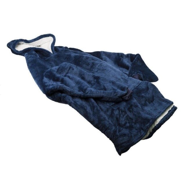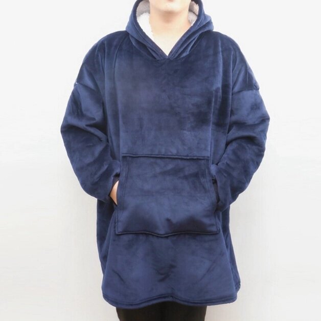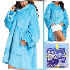 Двухсторонний плед - халат - толстовка с капюшоном Huggle Hoodie Голубой