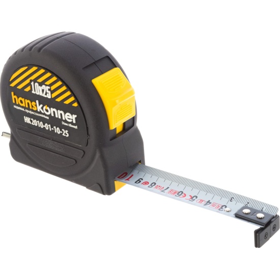 Рулетка Hanskonner HK2010-01-10-25, 10x25, 2 стопа, противоударный корпус Soft touch, мощный магнит