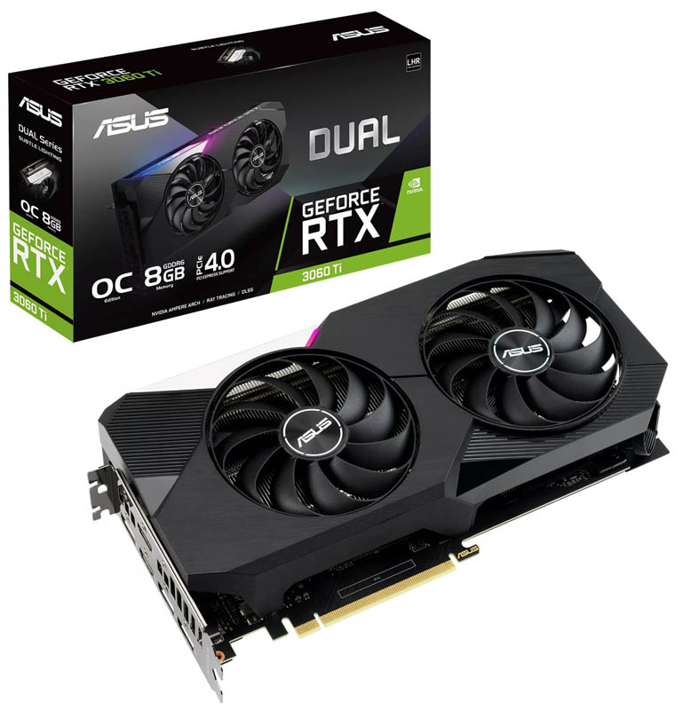 Видеокарта Asus NVIDIA - GeForce RTX 3060 Ti Dual OC, PCI-E 4.0 16x, GDDR6 8GB 256bit, 2x HDMI, 3x DP, max 7680 x 4320, 269мм, LHR, Full Height, DUAL-RTX3060TI-O8G-V2