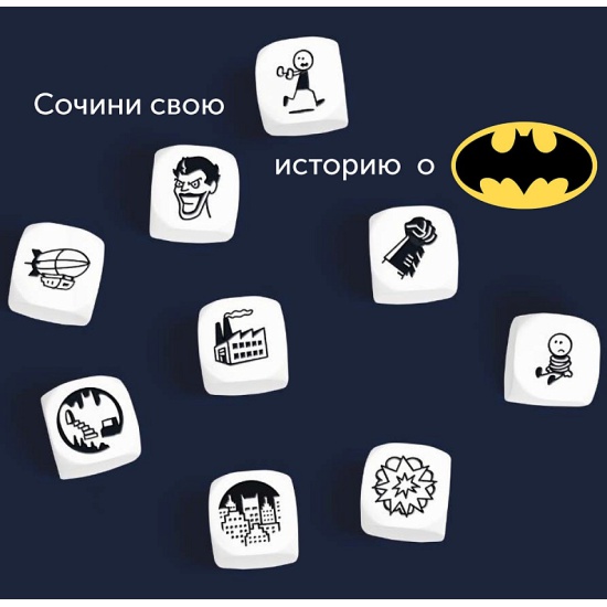 Настольная игра RORYS STORY CUBES RSC104 Кубики Историй БэтменПридумай приключения для Бэтмена! Сочини свою историю о таинственном супер-герое, например, начав с фразы "На темных улицах Готэма…". Сюжет полностью зависит от тебя: ты решаешь, с кем Бэтмену придется сражаться и не станет ли известна его личность. А может Джокеру удастся сбежать из лечебницы Аркхэм и захватить весь город? С дополнительным набором «Бэтмен» ты сам создаешь рассказы о супер-злодеях, их коварных ловушках и о новых подвигах любимых героев.Как играть?Замените в основном наборе три кубика на кубики из набора «Сказки. Берите все кубики в руку, хорошенько трясите и бросайте. Картинки, которые выпали должны составлять сюжет вашей истории. Разделите шестигранники на три группы (по три кубика в каждой) и начинайте фантазировать. Первые три кубика — это начало истории, следующие — продолжение, а последняя тройка — концовка.