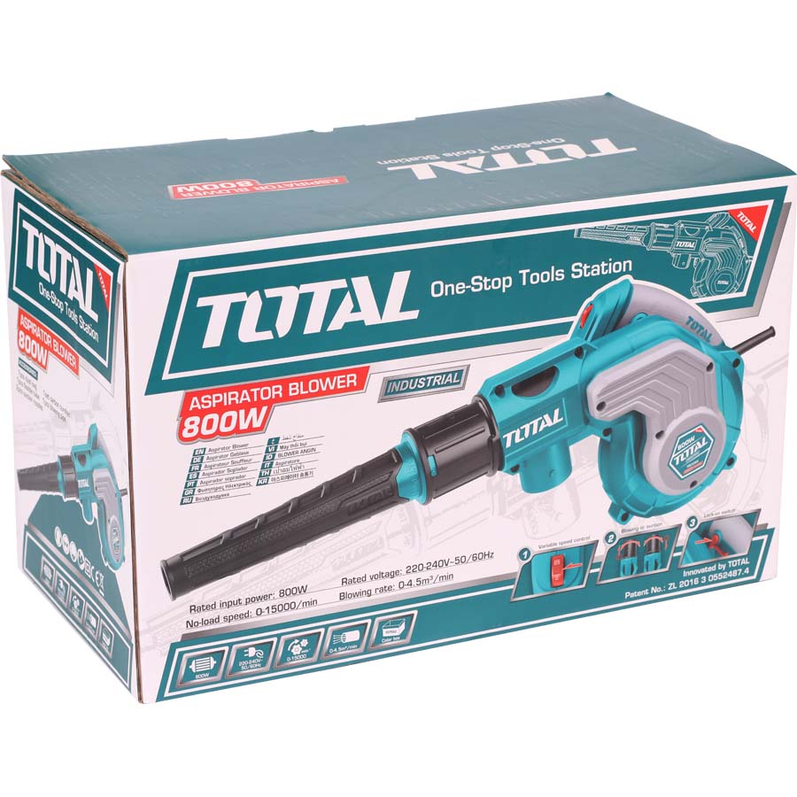 TOTAL TB2086 - универсальный инструмент, способный работать не только на выдув, но и на всасывание. При его помощи вы приведете в порядок и автомобиль, и жилое помещение, и придомовую территорию. Аппарат поставляется с мешком для мусора и насадками для работы с различными видами загрязнений.