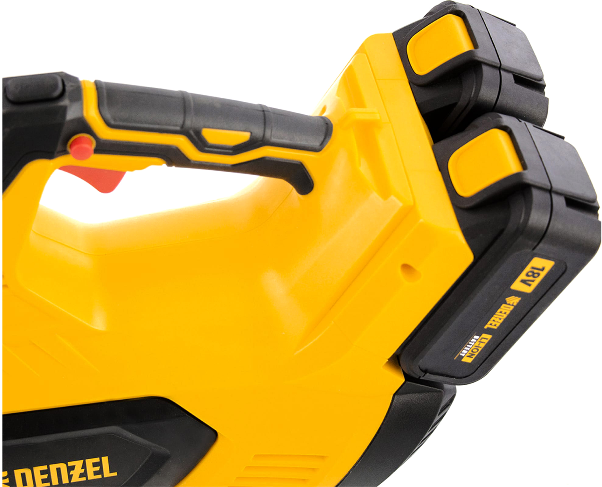 Denzel RB180-36 - легкий автономный инструмент для очистки придомовой территории от легкого мусора. Для повышения продолжительности рабочего цикла одновременно можно задействовать две батареи. Модель отличается солидными характеристиками: скорость воздушного потока - до 50 м/с, расход - до 820 м3/ч.