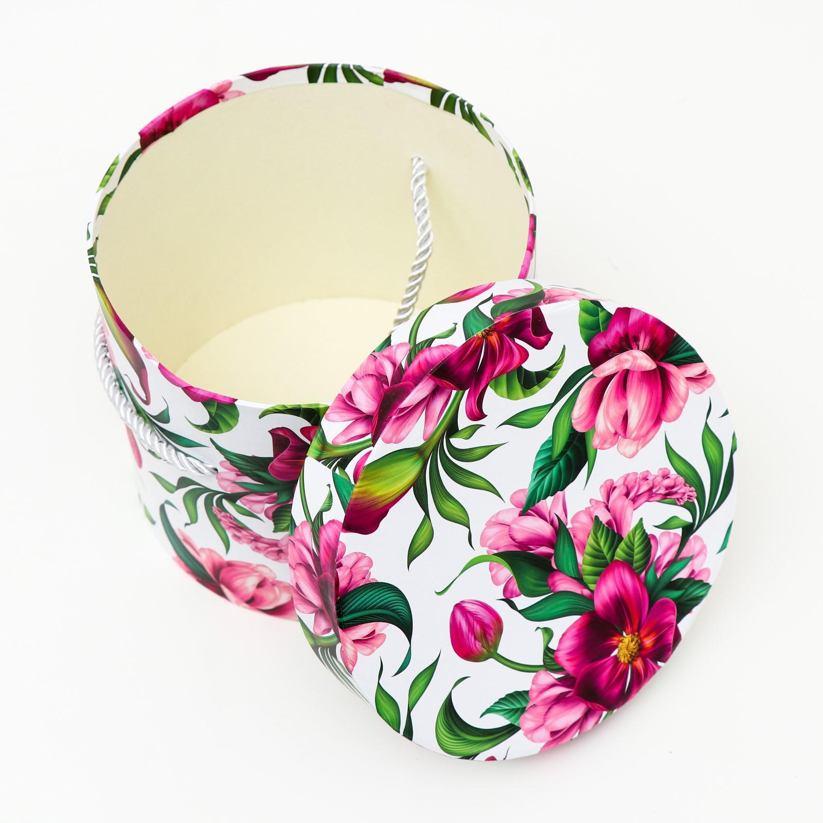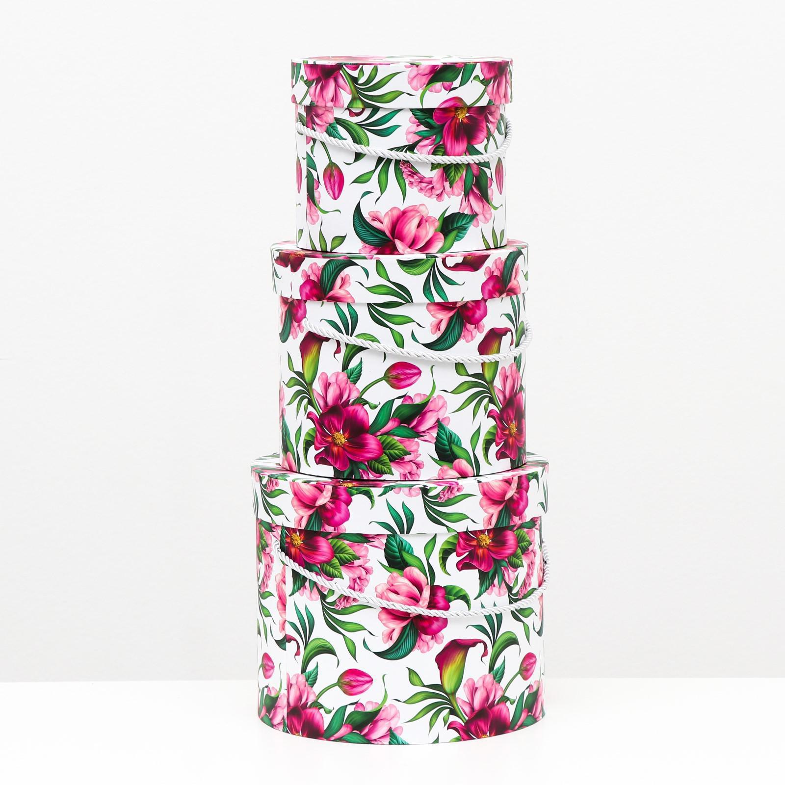 Набор круглых коробок 3 в 1 "Розовые лилии", 23 x 19,5 - 17 x 14 см 7128414