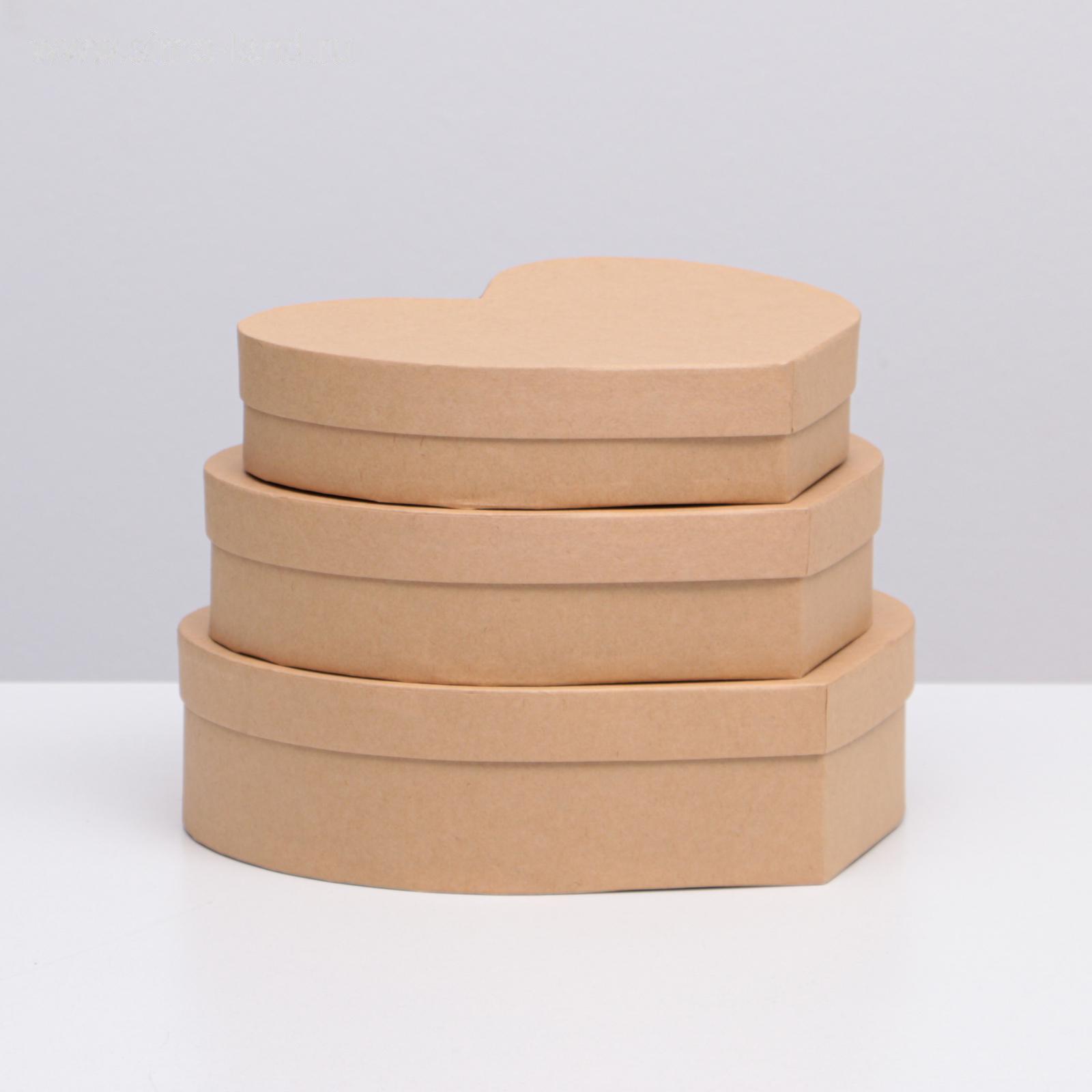 Набор коробок в форме сердца 3 в 1 "Крафт однотонный", 29 х 24 х 7 - 25 х 20 х 5 см 5300493