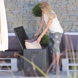Модель изготовлена из пластика с имитацией под натуральный ротанг, дерево и бамбук. Помимо хранения ящик можно использовать в качестве столика.
