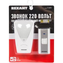 Беспроводной дверной звонок REXANT в розетку 220 В и световой индикацией, 36 мелодий 73-0070