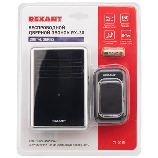 Беспроводной дверной звонок REXANT c цифровым кодированием, 25 мелодий 73-0015