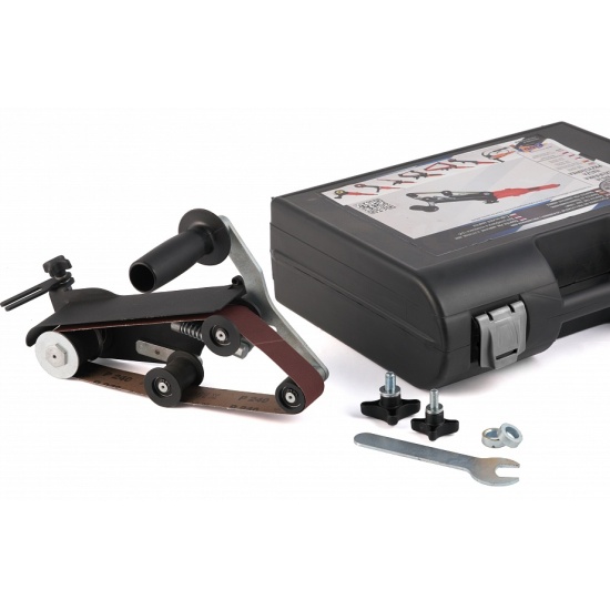 Переходник GLOB под УШМ 125мм для шлифования и полирования труб, длина ленты 650мм, ширина 40мм GS09-00Адаптер под 125мм угловую шлифовальную машину с регулировкой скорости (ОБЯЗАТЕЛЬНО) для монтажа абразивной ленты длиной 650мм и шириной 30-35мм. Адаптер GS09-00 подходит под УШМ 125мм любого производителя благодаря наличию специальных колец в комплекте. Предлагаемая ротационная скорость на холостом ходу макс 4000-6500 об/мин. Применение: Для шлифовки и полировки круглых, овальных и плоских элементов (трубы, фитинги, перила и т.д.). При работе с трубами – возможные диаметры до 60мм. Место крепления: На угловых шлифовальных машинах 125мм, резьба М14 (стандарт). Шлифовальный инструмент: Шлифовальная лента:длина: 650мм,ширина: max.35 мм.Материал ленты:абразивный тканый материал, абразивный нетканый материал, войлочный материал (флис).