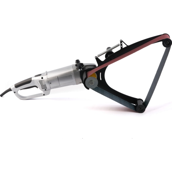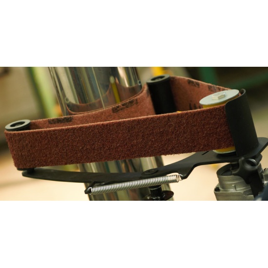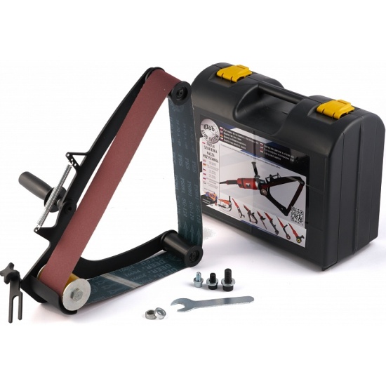 Переходник GLOB для УШМ 180-230мм для создания ленточной шлифмашины GS02-00Адаптер под 180мм или 230мм угловую шлифовальную машину с регулировкой скорости (ОБЯЗАТЕЛЬНО) для монтажа абразивной ленты длиной 1250мм и шириной 70мм. Адаптер GS02-00 подходит под УШМ 180 и 230мм любого производителя благодаря наличию специальных колец в комплекте. Предлагаемая ротационная скорость на холостом ходу 6000 об/мин. Применение: Для шлифовки и полировки круглых и овальных элементов (трубы, фитинги, перила и т.д.). При работе с трубами – возможные диаметры от 100мм до 300мм. Место крепления: На угловых шлифовальных машинах 125мм, резьба М14 (стандарт). Шлифовальный инструмент Шлифовальная лента:длина: 1250мм,ширина max.70мм.Материал ленты:абразивный тканый материал, абразивный нетканый материал, войлочный материал (флис).