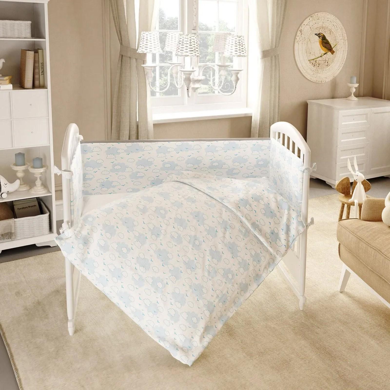 «Облака» - универсальное сочетание комфорта и безопасности для вашего малыша. Постельное белье изготовлено из натурального хлопка, дизайн выполнен в ненавязчивом забавном мотиве. Очень милый и легкий, он идеально впишется в детскую как для мальчиков, так и для девочек.