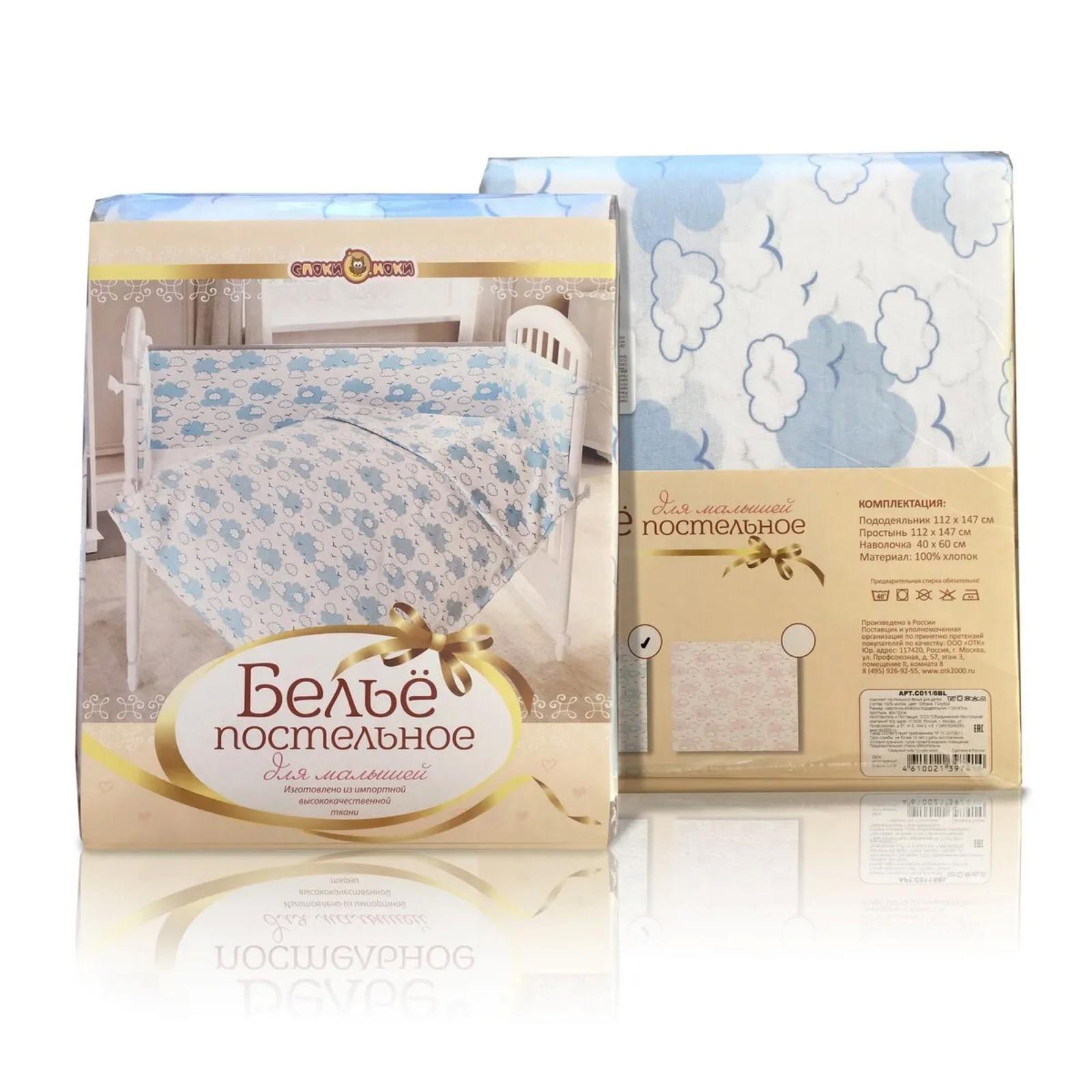 КПБ «Облака», размер 60×120 см, 112×147 см, 40×60 см, голубой 5072640