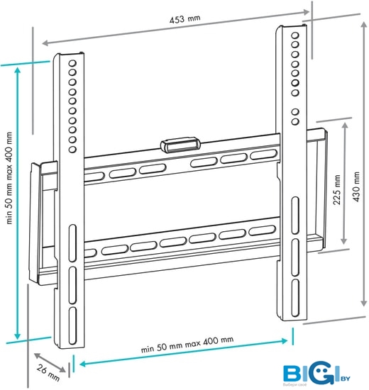 - Совместимость с креплением VESA 50x50, 75x75, 100x100, 200x100, 200x200, 200x300, 200x400, 300x200, 400x200, 300x300, 400x300, 400x400