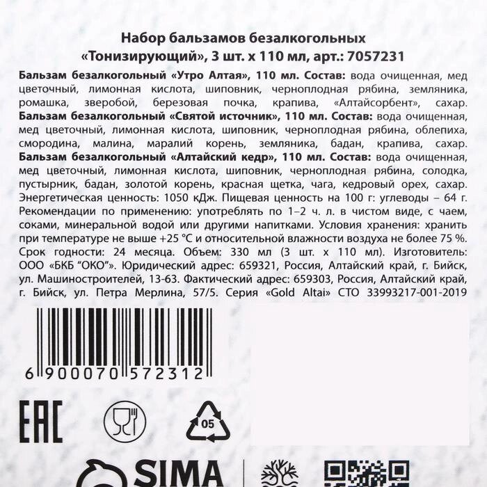 Набор бальзамов безалкогольных "Тонизирующий" 3 шт. x 110 мл.