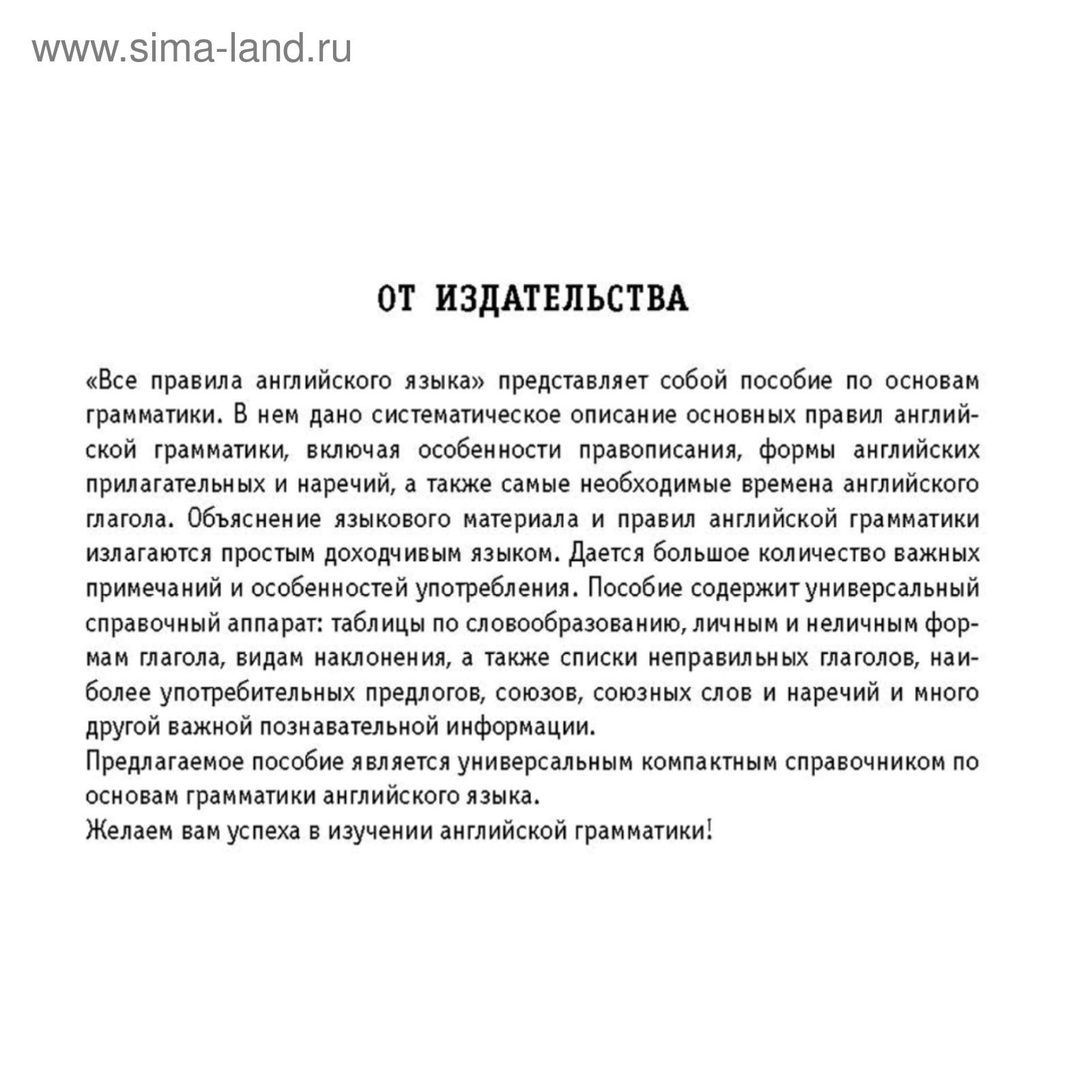 Этот удобный и универсальный справочник содержит информацию по всем правилам английской грамматики и правописания, и станет незаменимым помощником при изучении языка. Весь материал имеет четкую структуру, содержит таблицы и примеры для лучшего запоминания информации. Справочник также дополнен списком форм неправильных глаголов, англо-русским словарем и списком наиболее употребительных сокращений. Книга будет полезна всем читателям, изучающим английский язык. Серия «Новые карманные словари» включает в себя словари и справочные пособия по русскому и иностранным языкам. Удобный формат способствует популярности серии.
