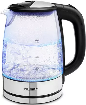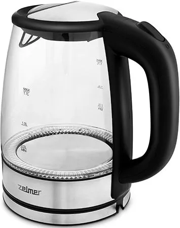 Электрический чайник, мощность 2200 Вт, объем 1.7 л, материал корпуса металл/стекло, нагревательный элемент закрытая спираль, дополнительные функции: подсветка воды, индикация включения, подставка с вращением на 360°.