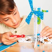 У наборі представлені деталі різної форми та довжини з пластику й металу, які дадуть змогу зібрати найнеймовірніші конструкції, створені дитячою фантазією.
