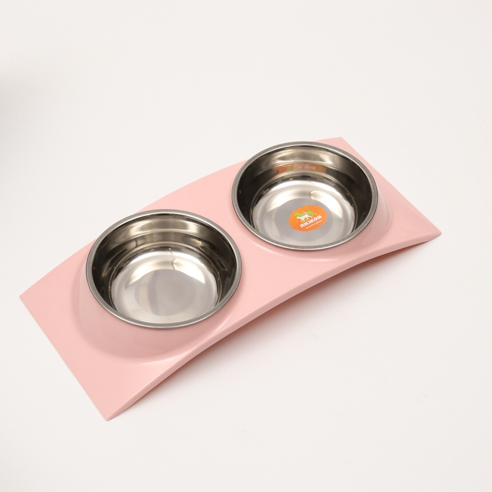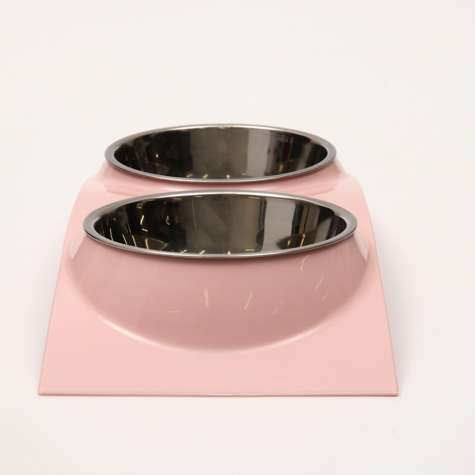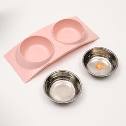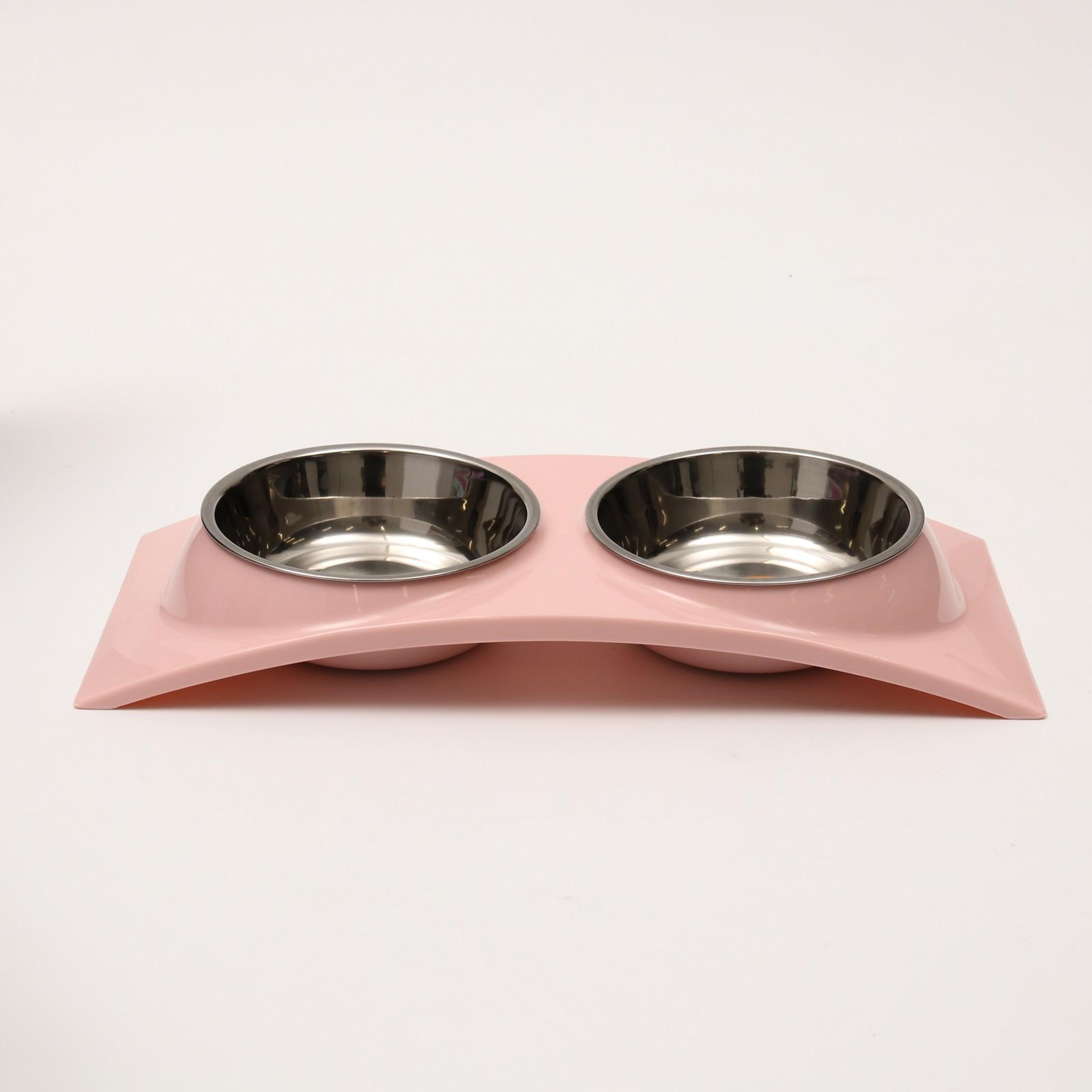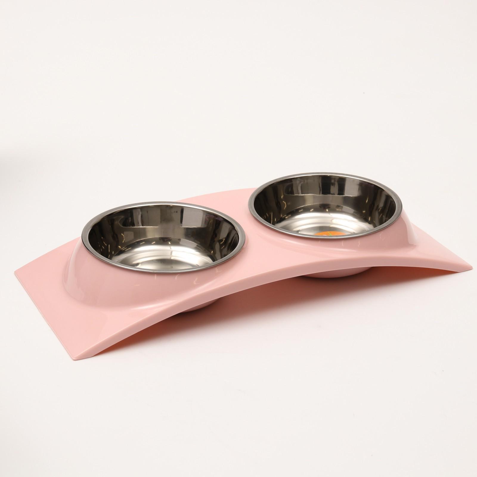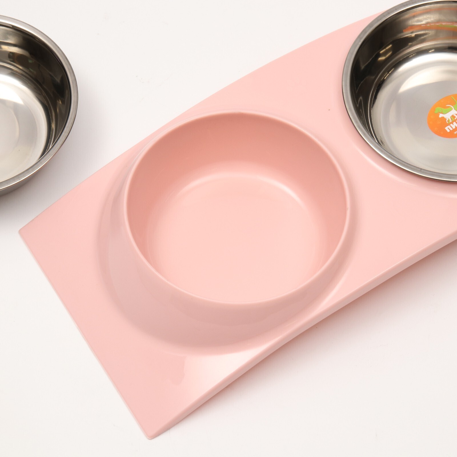 Миска металлическая двойная на пластиковой основе, 38,5 х 16,7 х 5 см, розовая 7333844