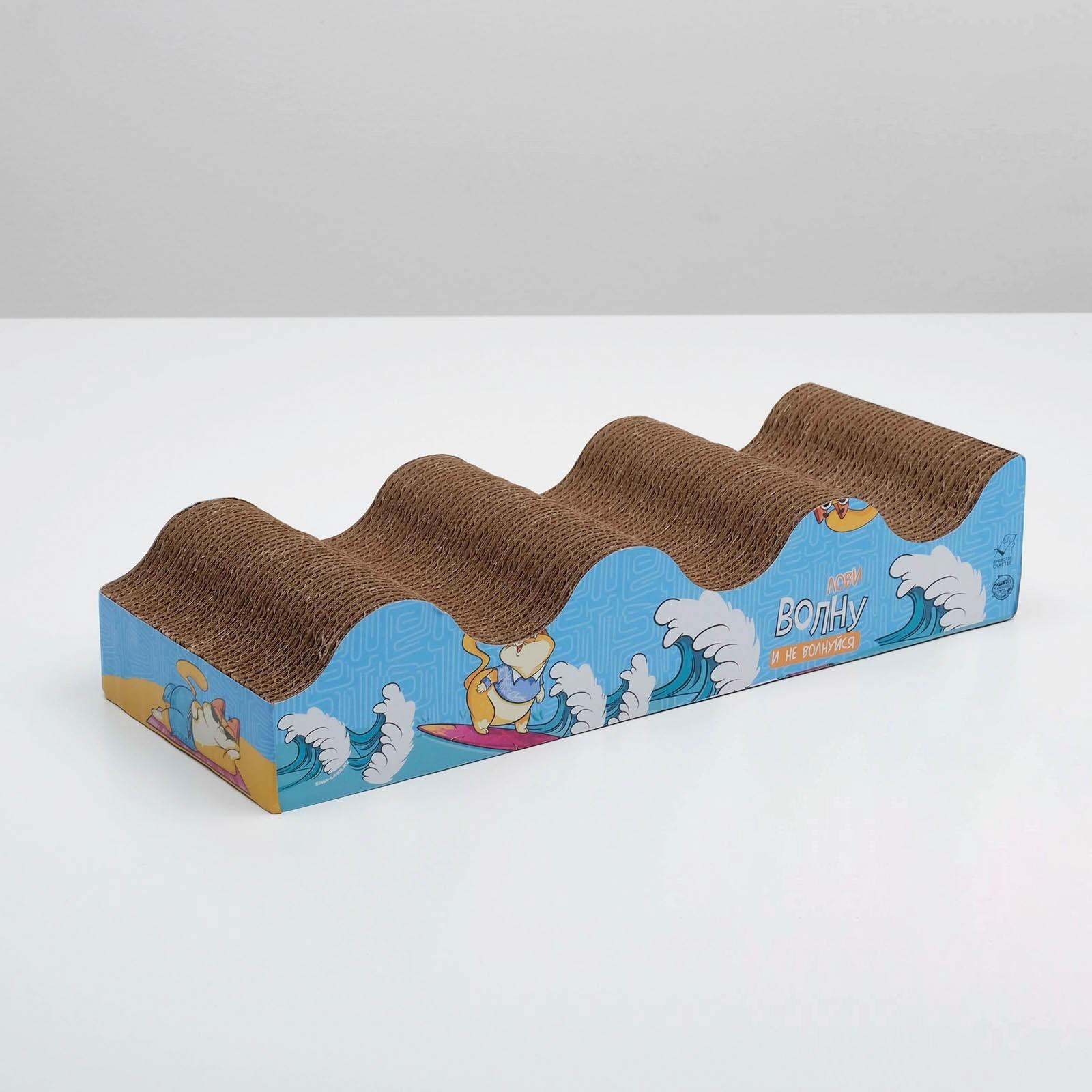 Когтеточка из картона с кошачьей мятой «Лови волну», волна с дном, 45 × 18 см 5478377