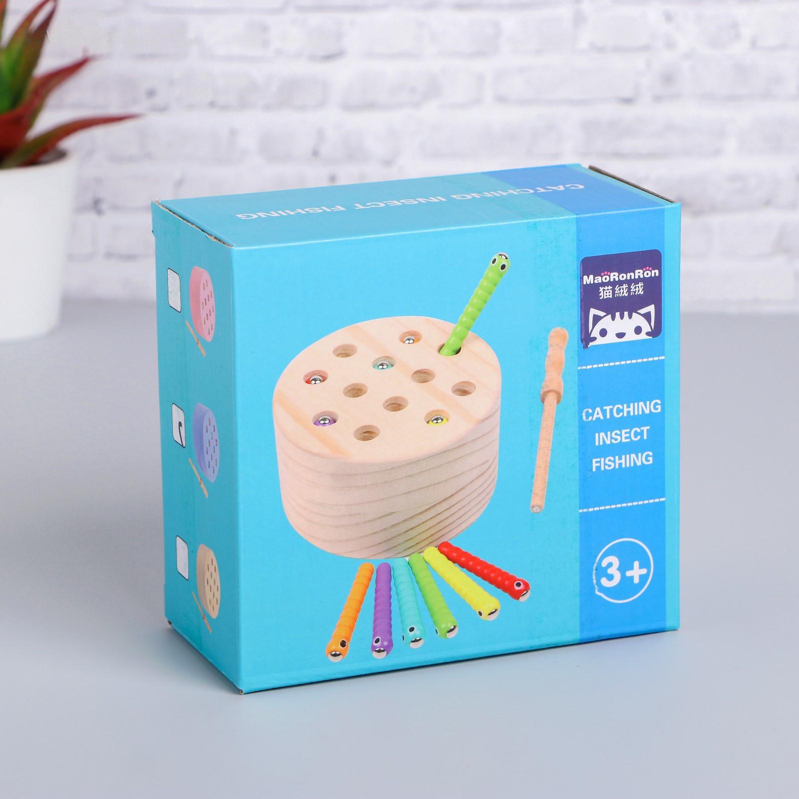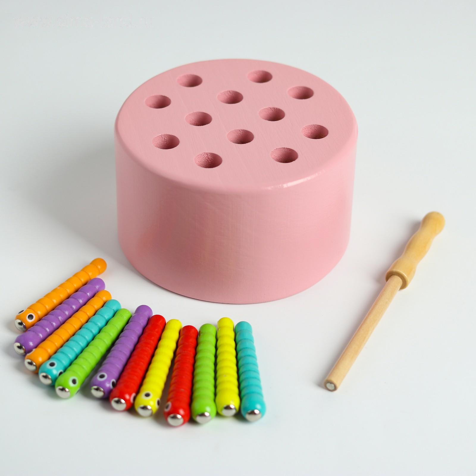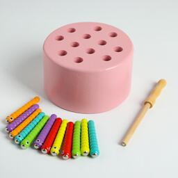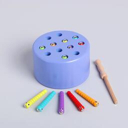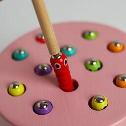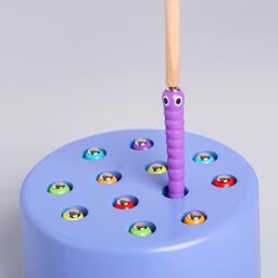 Малышу предстоит поймать всех червячков с помощью магнитной удочки.