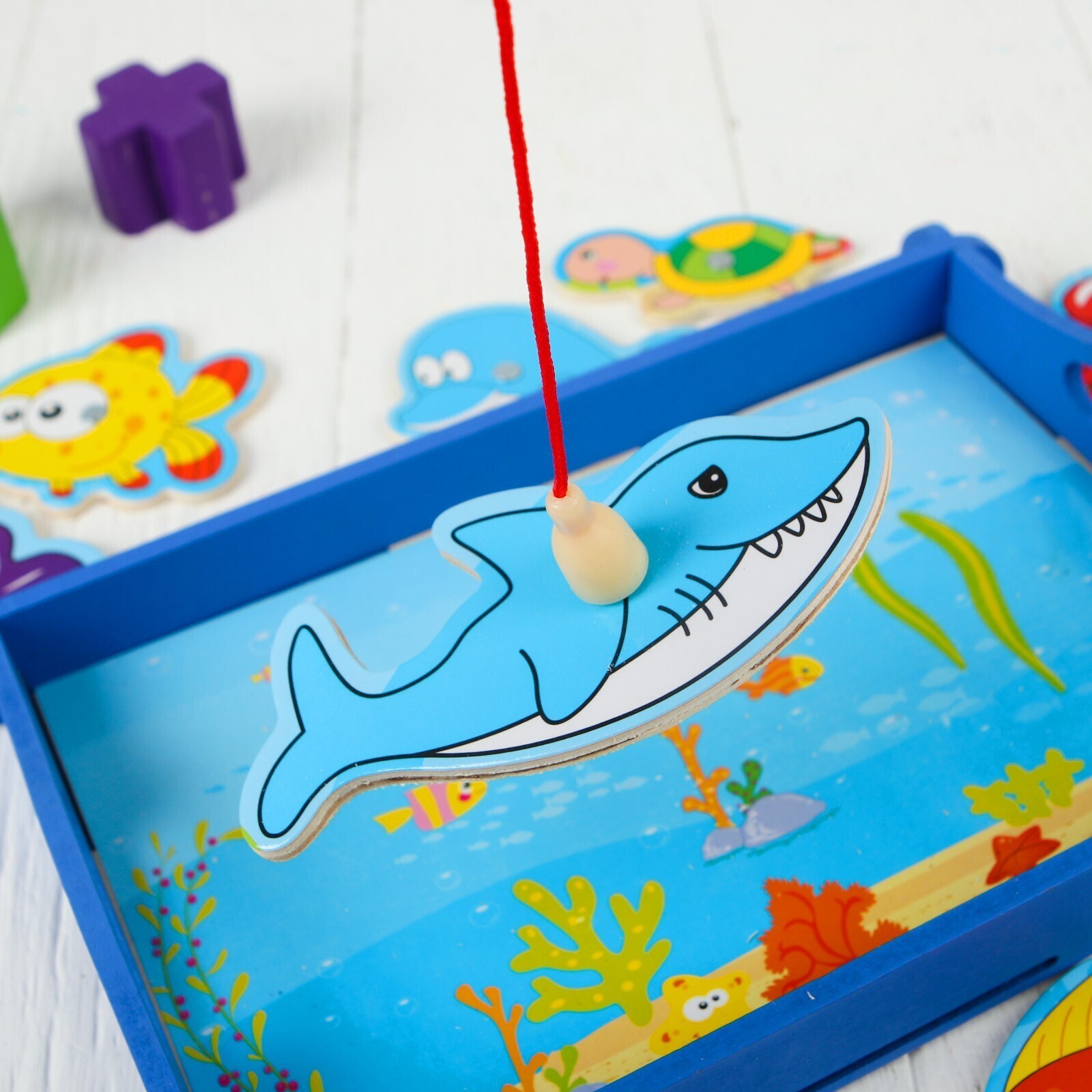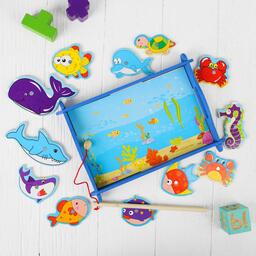 Рыбалка — это популярная развивающая игрушка, которая позволит малышу увлекательно и с пользой провести время. Поймать яркую добычу не так легко, как кажется! Кроха должен продемонстрировать навыки концентрации, пространственное мышление и хорошую координацию движений, чтобы совместить удочку и фигурку.