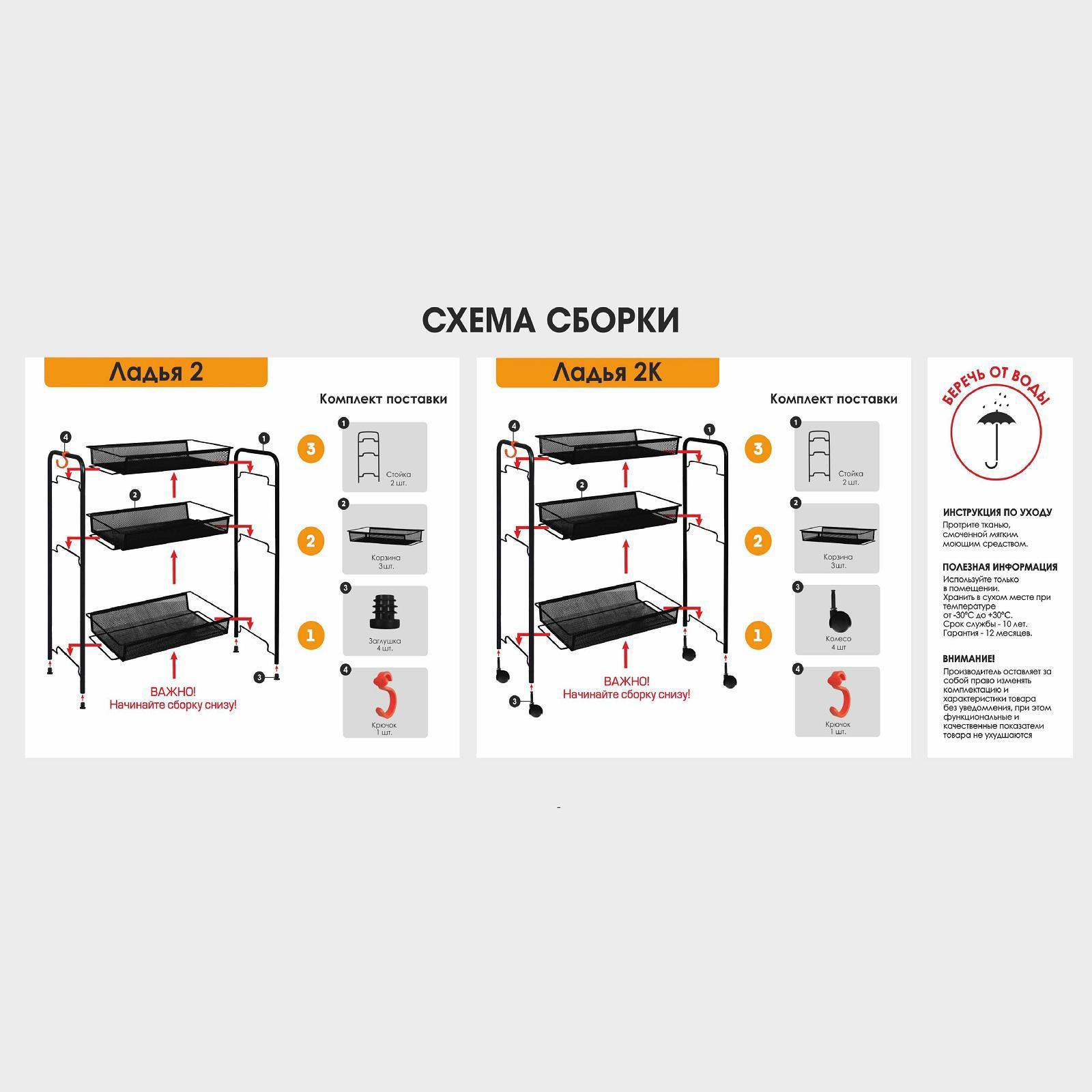Этажерка «Ладья 2К», 3 яруса, 44×25×75,5 см, на колёсах, цвет светло-серый 3364679