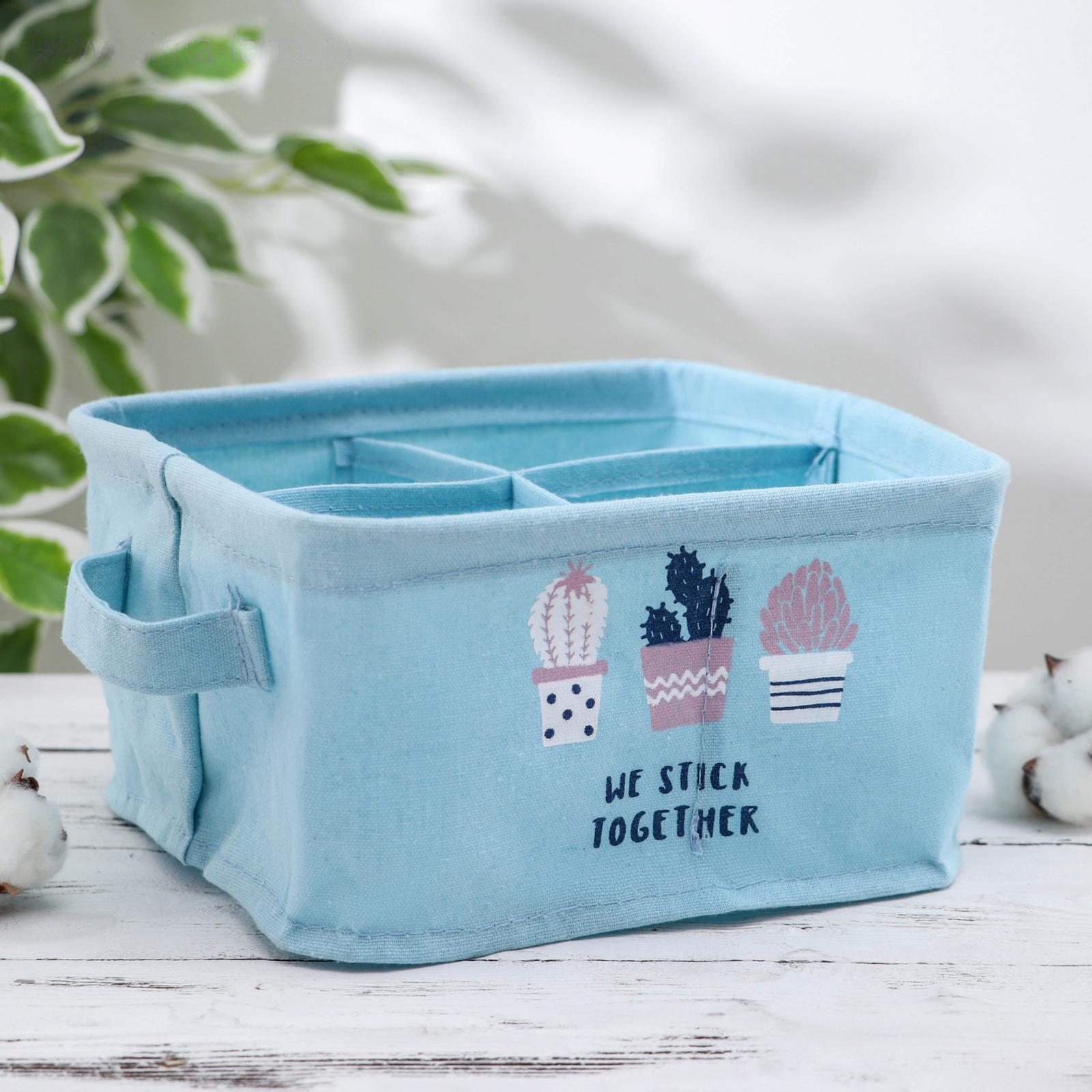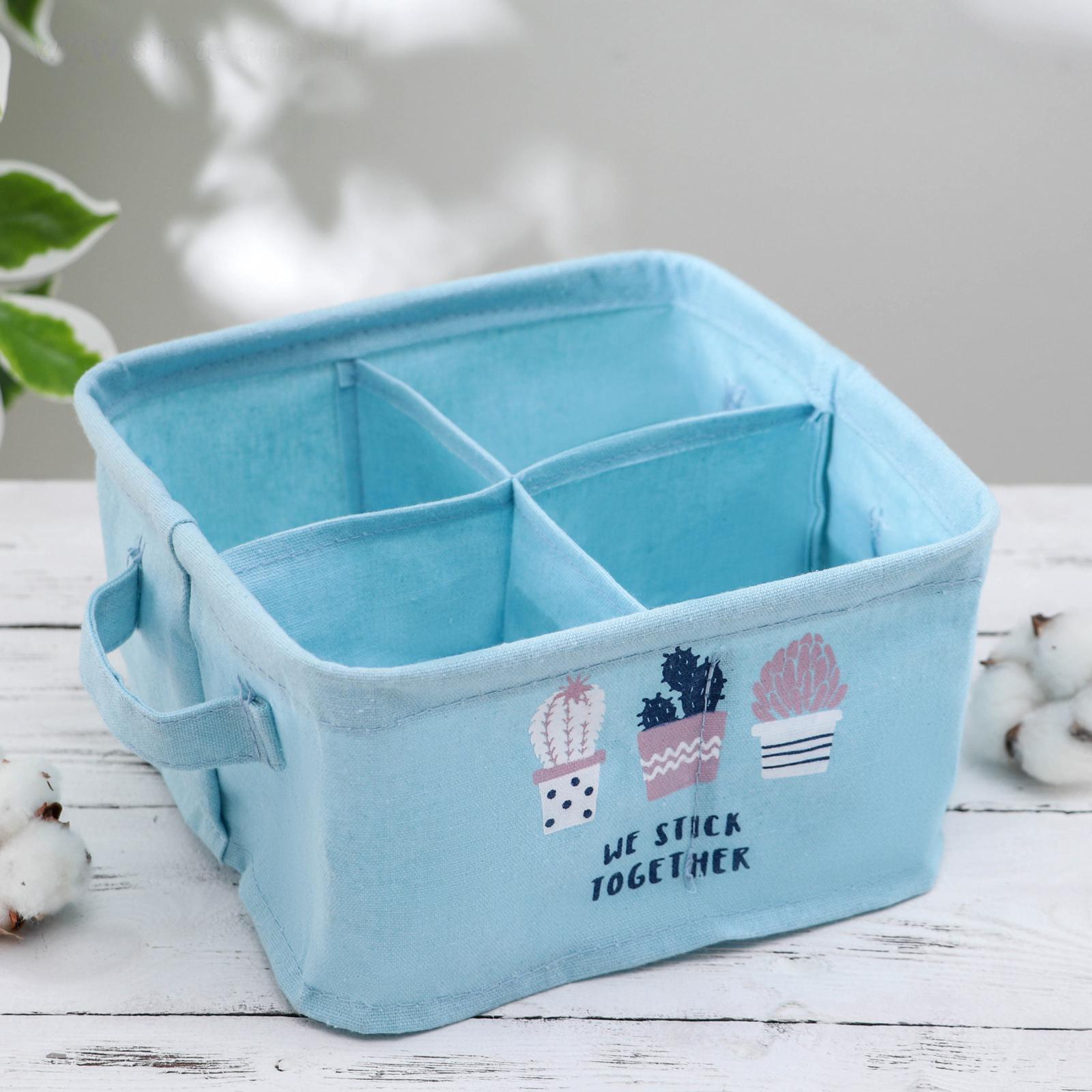 Органайзер для хранения с ручками Доляна «Кактус», 4 ячейки, 20×20×11 см, цвет голубой