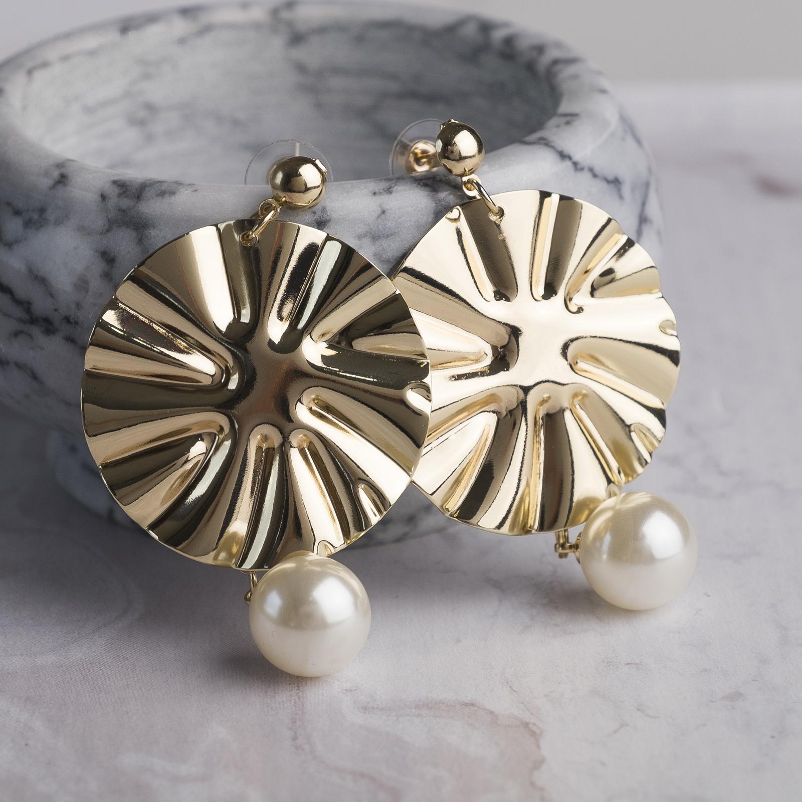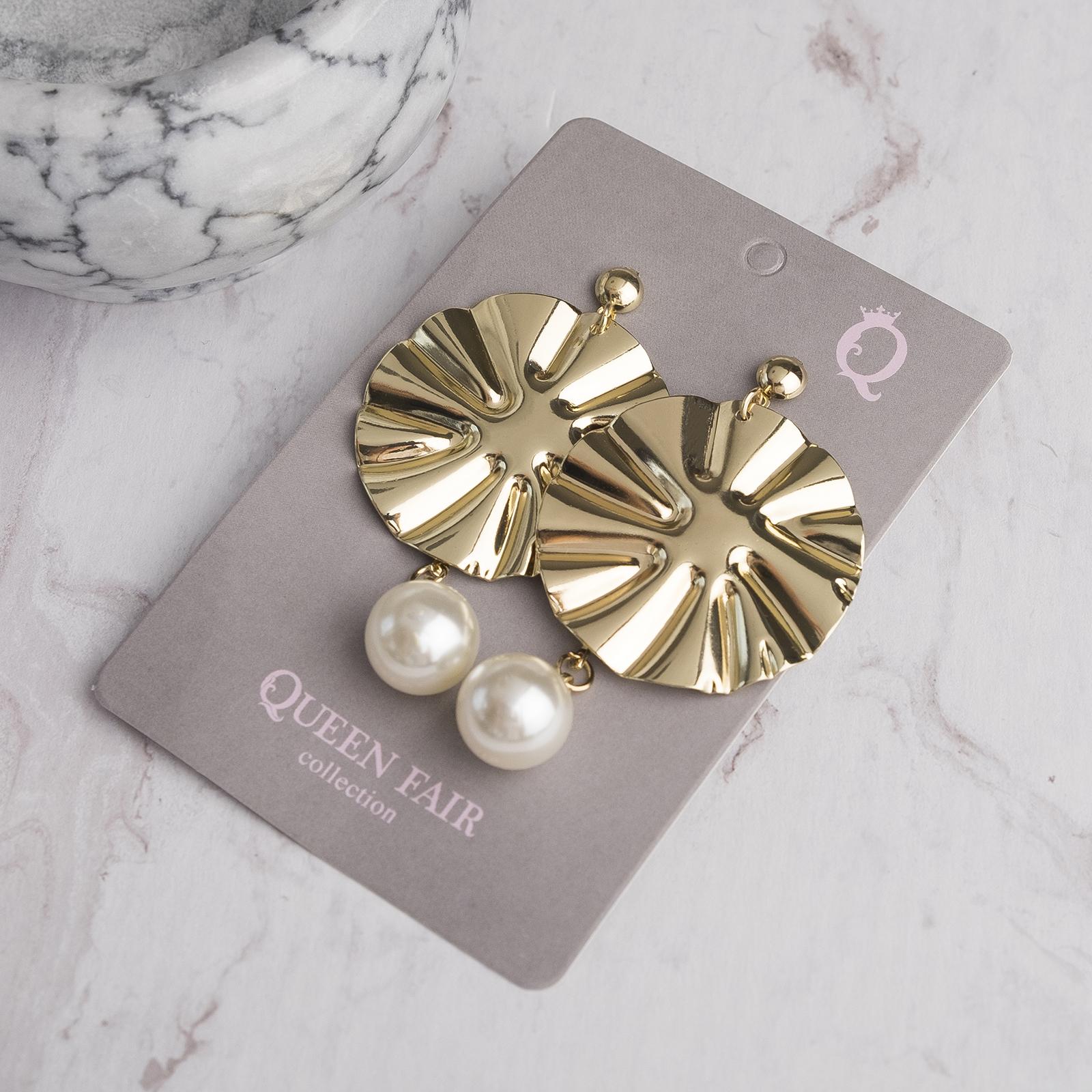 Серьги с жемчугом, "Атмосфера" сжатый диск, цвет золото 4505146