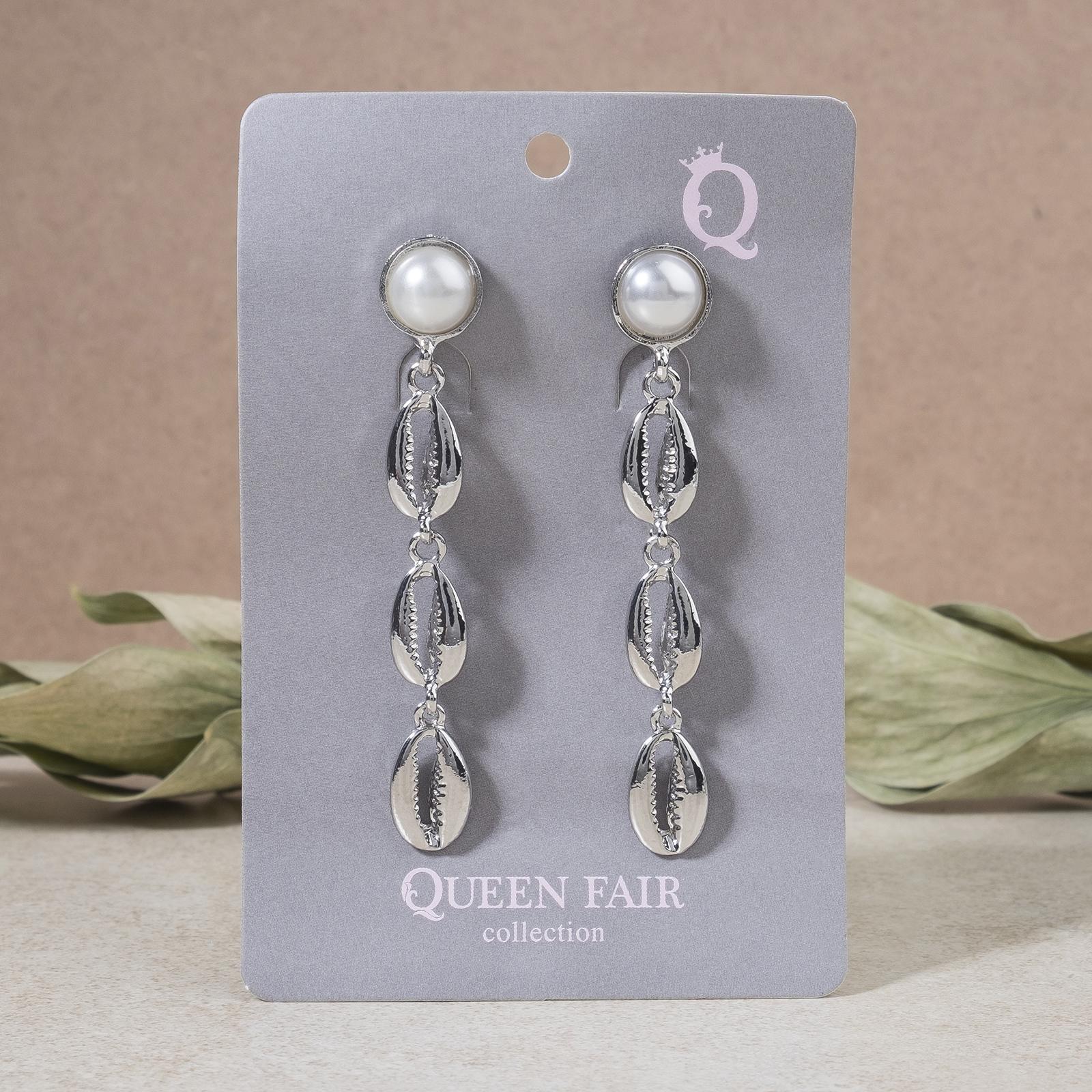 Серьги с жемчугом "Ракушки", цвет белый в серебре