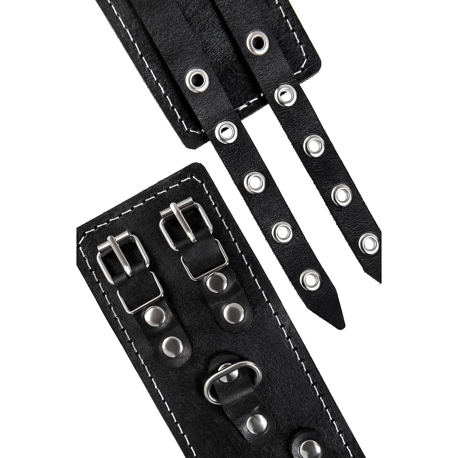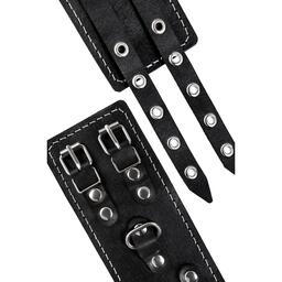 Оковы с двумя ремнями и красной подкладкой Pecado BDSM, кожа, чёрные
