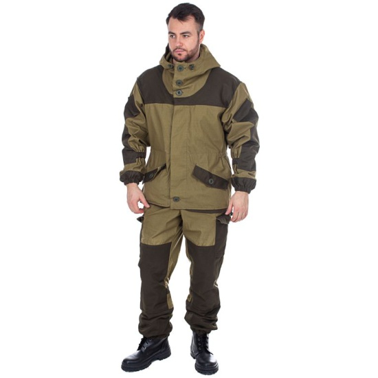 Костюм летний Горка-V цвет Хаки ткань Палатка/ГретаКлассический костюм Горка от Huntsman - это высокое качество материалов и пошива, наш костюм прослужит Вам долгие годы.КурткаОсобенности модели:регулируемый капюшон с козырьком и утяжкой с фиксаторомпуговицы (НАТО) для надежности крепления пропущены через киперную лентудва кармана с клапаном на пуговицах внизуна каждом рукаве по одному карману, с клапаном на липучкевнутренний карман из основной тканирезинка в области предплечья для лучшего прилегания к рукеманжеты рукавов стягиваются резинкойутяжка по низу курткиБрюкиОсобенности модели:брюки с широким поясом на резинке со шлевками под ременьдва кармана сзади закрыты клапаном на пуговицедва кармана прорезных сбоку, два накладных объемных с боку в области колена с клапаном на пуговицебрюки имеют отстегивающиеся помочи с широкой резинкой (50мм.)брюки по низу стягиваются резинкойрезинка в области голени для лучшего прилегания к ногевнутри по низу «пыльник» из ткани бязь (100% х/б)