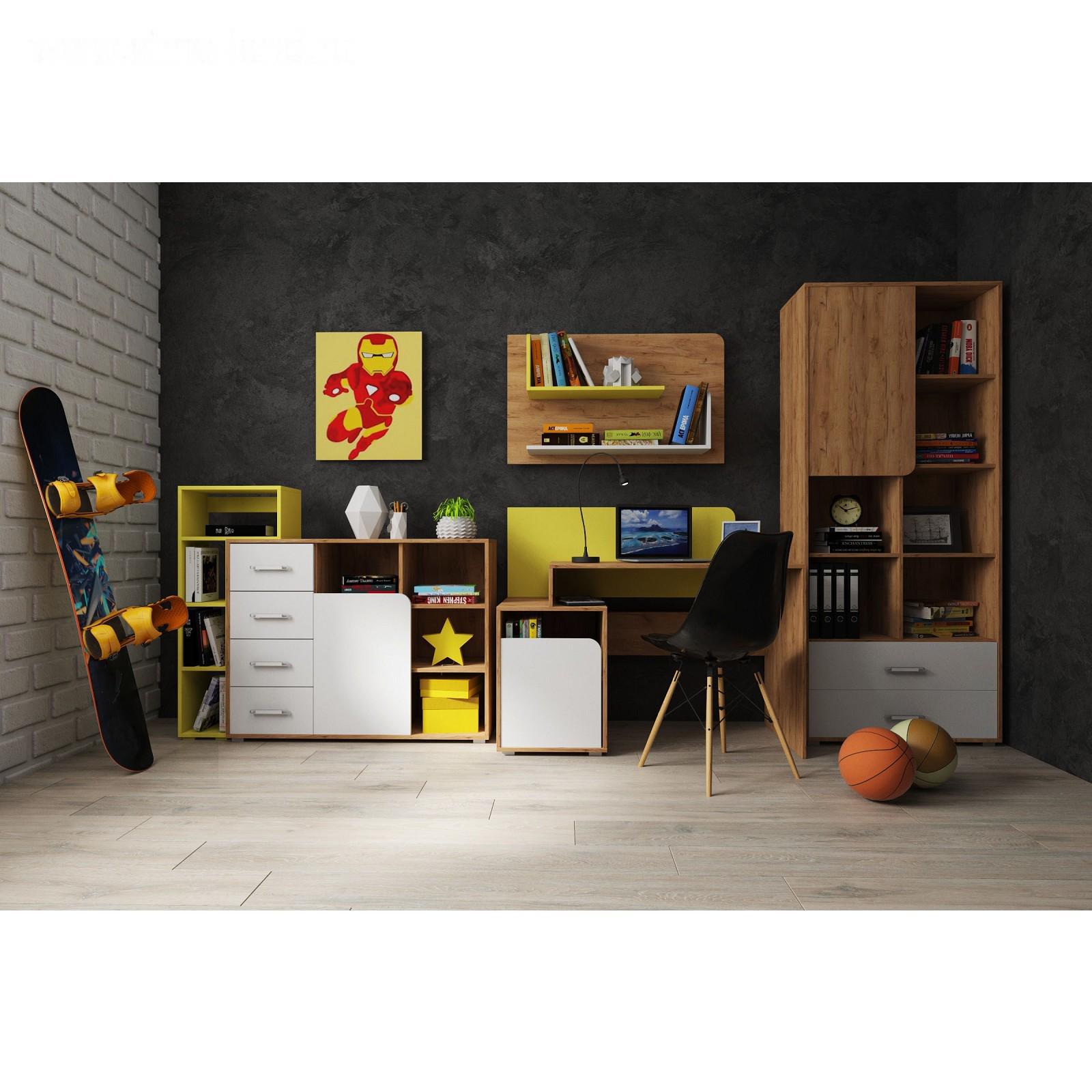 Молодежная Дастин 3 Дуб Вотан/Белая Аляска/Желтый шафрановый