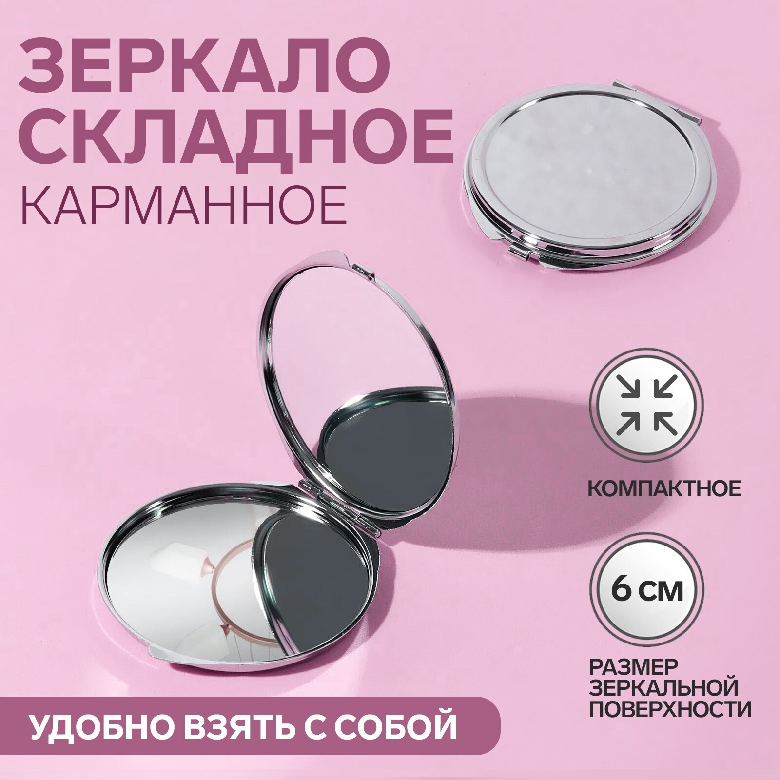 Зеркало складное, d 6 см, цвет серебристый 252573