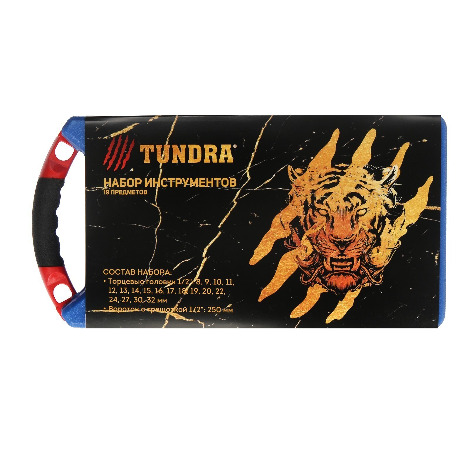 Набор инструментов в кейсе ТУНДРА, подарочная упаковка "Тигр", CrV, 1/2", 19 предметов