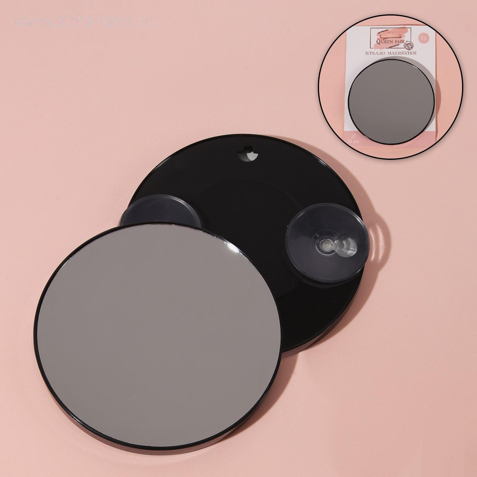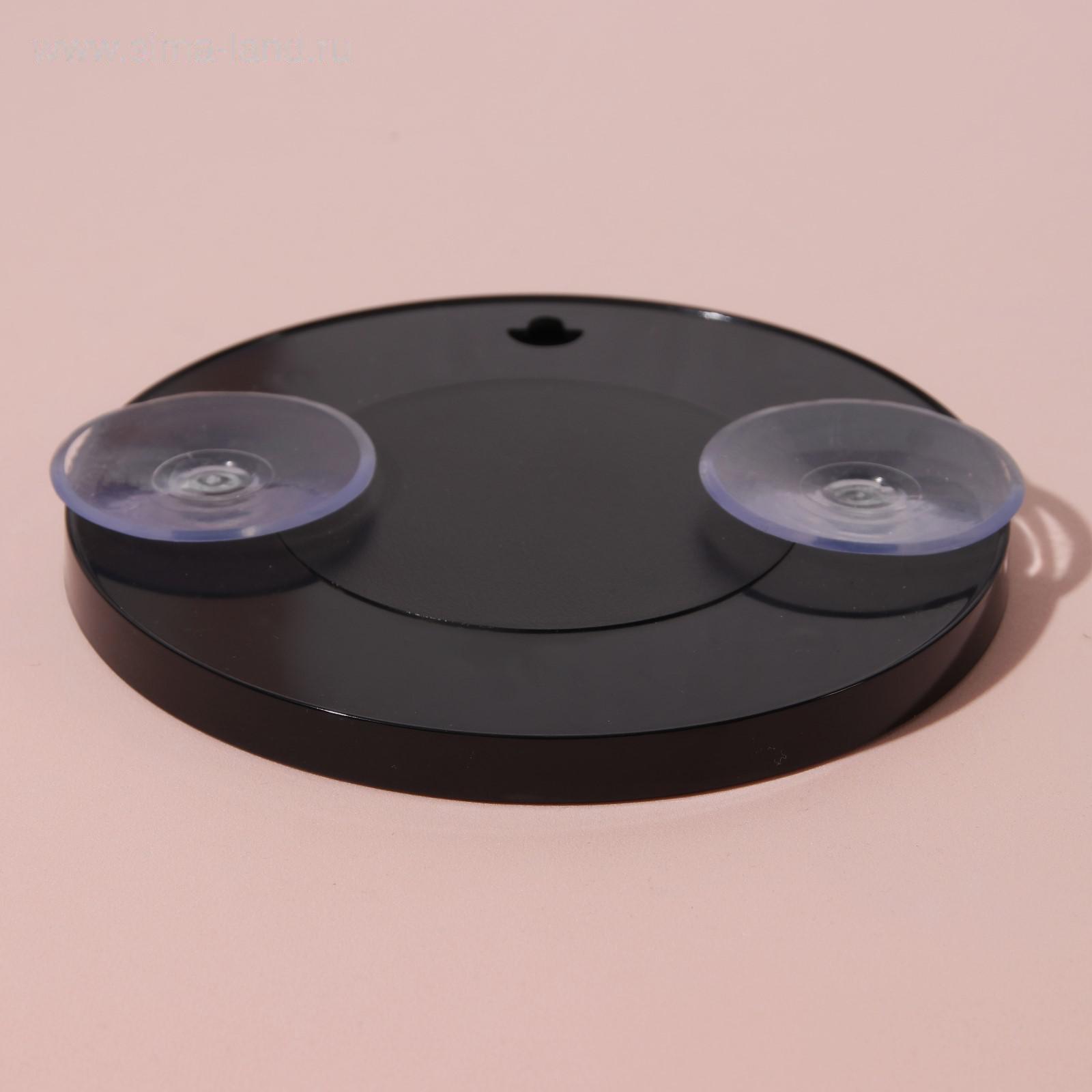 Зеркало макияжное, увеличение × 5, на присосках, d 14 см, цвет чёрный