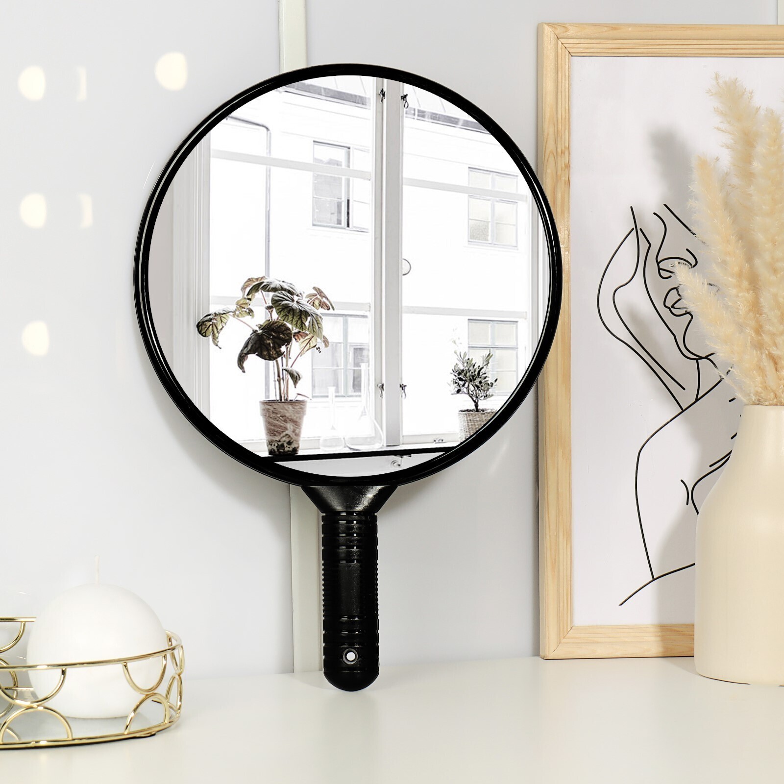 Зеркало с ручкой, d зеркальной поверхности 24,5 см, цвет чёрный