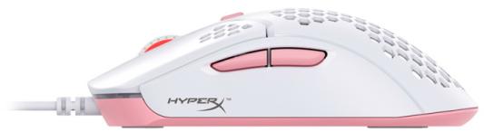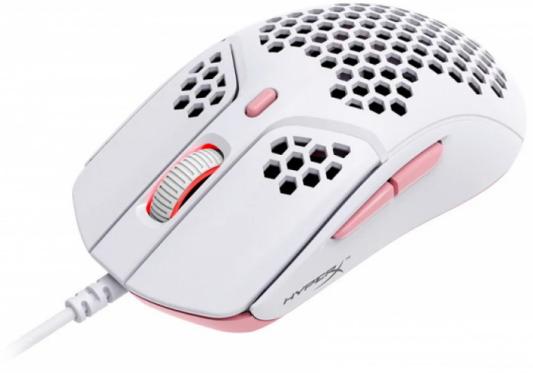 - Прочее Мышь проводная HyperX Pulsefire Haste оформлена в белом корпусе с элементами розового цвета. Перфорация на корпусе уменьшает вес устройства, пропускает лучше воздух, обеспечивая его микроциркуляцию. Подключается модель при помощи кабеля длиной 1.8 м с разъемом USB Type-A. Тканевая оплетка кабеля не допускает его повреждения. Особенность манипулятора в поддержке RGB-подсветки. На корпусе HyperX Pulsefire Haste содержатся программируемых 6 кнопок. На них можно установить последовательность команд, что ускоряет и упрощает порядок действий пользователя. В результате, победа становится реальнее. Высокая точность и скорость светодиодного датчика обусловлены его разрешением 16000 dpi. На обратной стороне корпуса находятся глайды из PTFE, которые обеспечивают легкое скольжение и более высокую отзывчивость мыши.