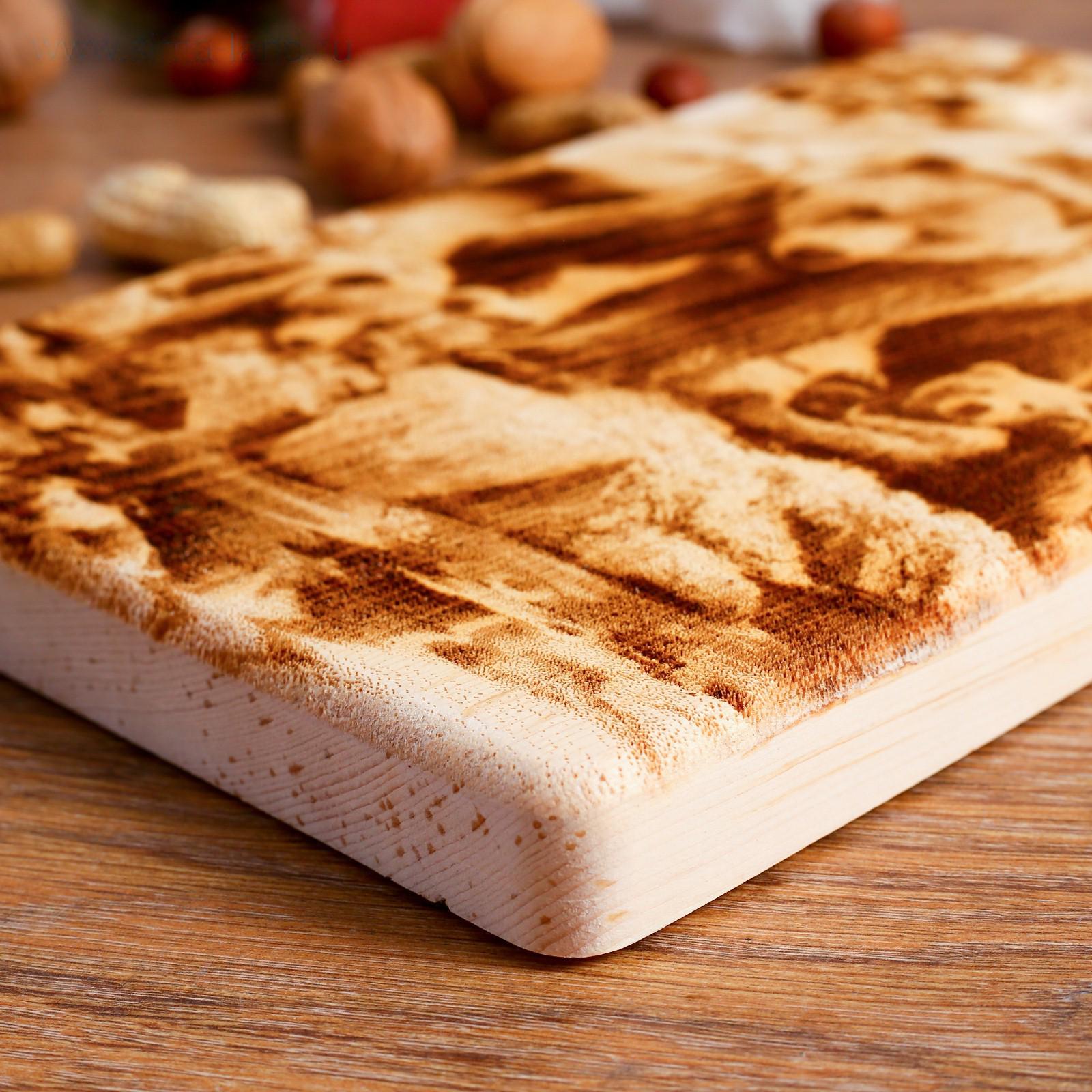 Разделочная доска из натурального кедра пригодится вам, если нужно приготовить бутерброды, сделать нарезку овощей, мясных продуктов и многого другого. С одной стороны, это полноценная рабочая поверхность, а с другой — предмет кухонного декора. Изделие обработано с помощью технологии лазерной гравировки.